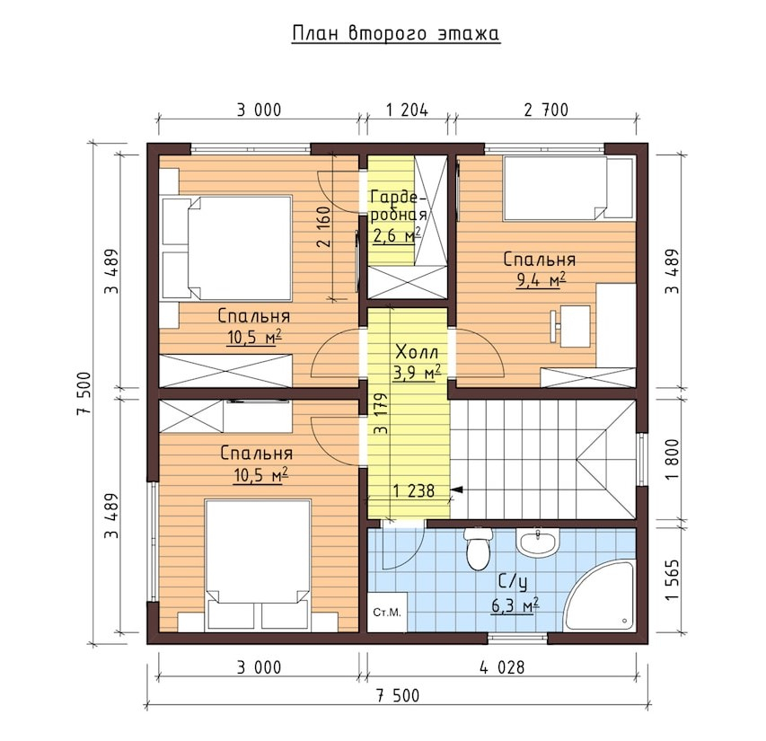 | Стены 2 этажа | Высота 2500 мм, СИП 174 мм., OSB-3, пенополистирол 150 мм., марка ПСБ-25Фл |