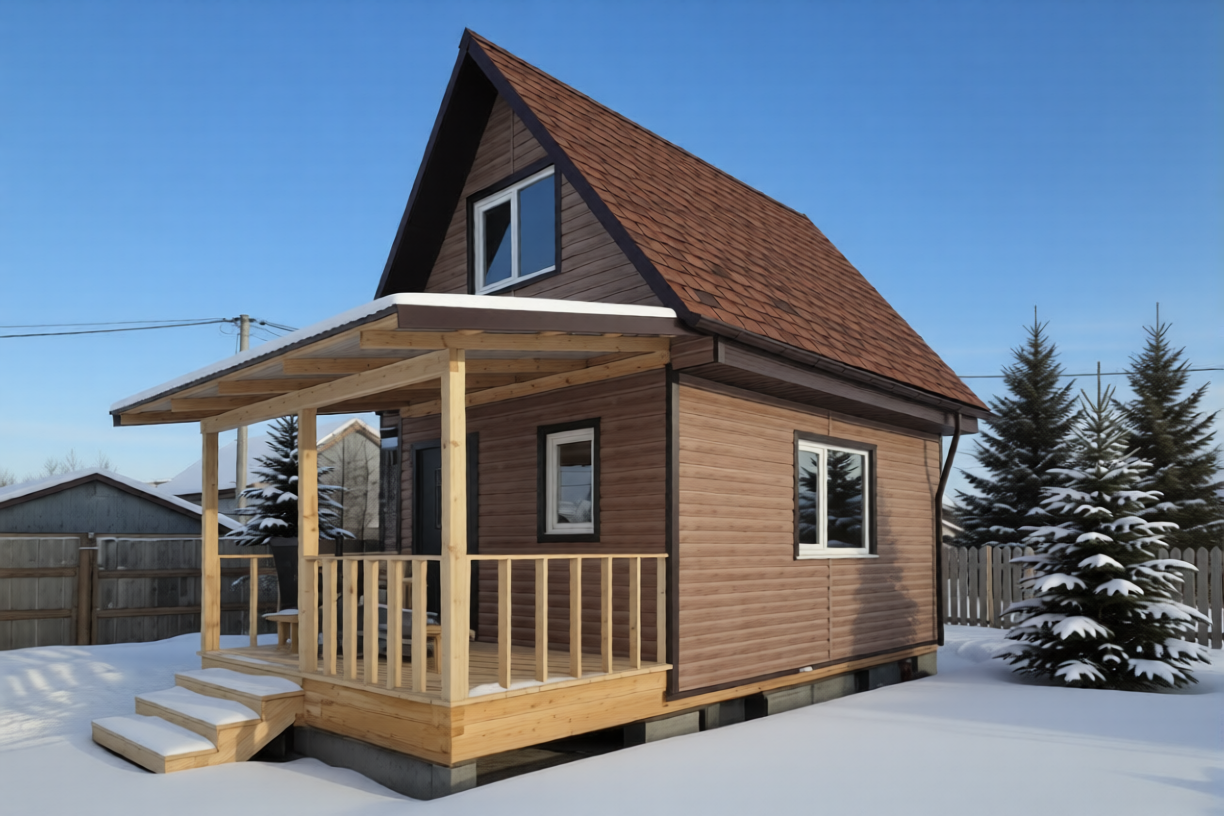 Каркасный дом 4х5м с мансардой 3х5м и верандой 2х4м