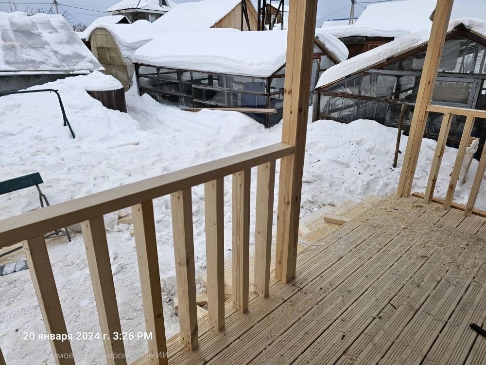 - Дополнительно: Веранда 2 х 4 м с перилами, без обшивки потолка, кровлей примыкает к основной кровле с перилами; крыльцо.