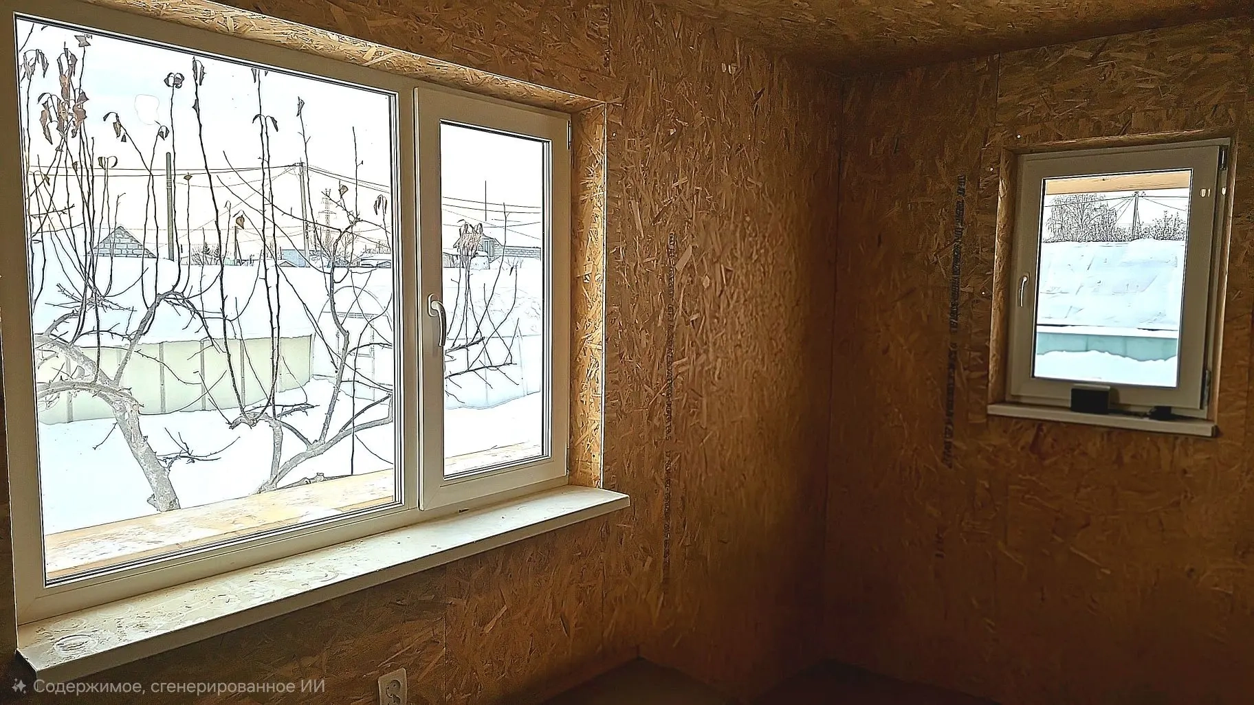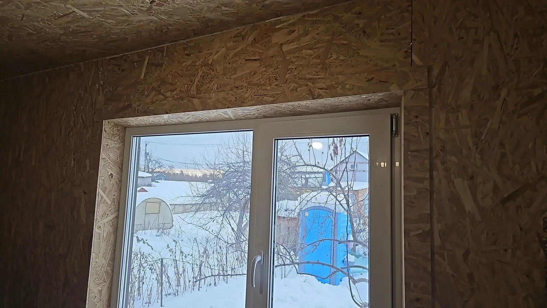 - Наружная обшивка стен: ОСП 9 мм, обналичка окон - имитация бруса (паз и шпунт обрезаны);