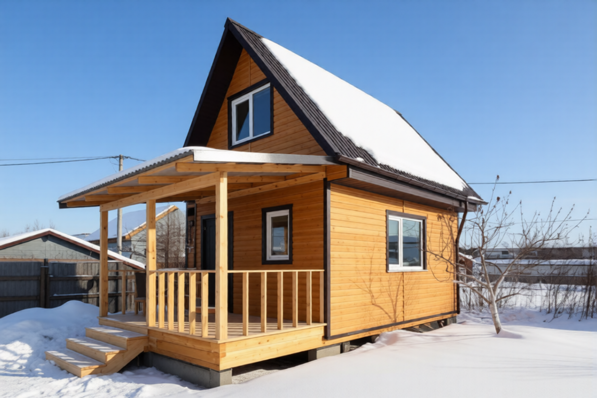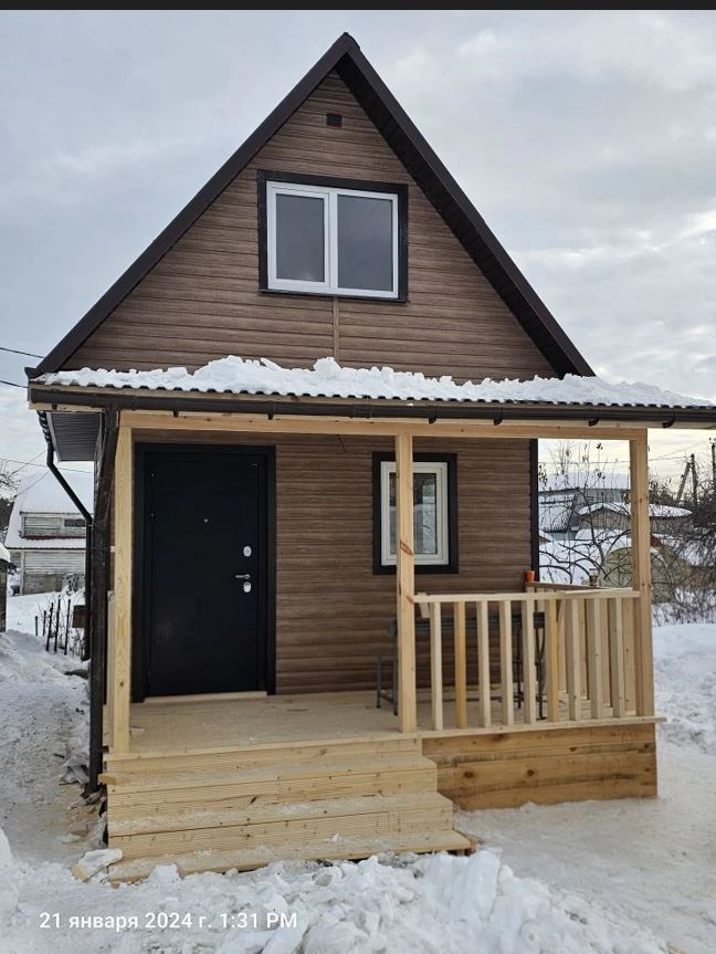 Данный дом дополнительно обшит сайдингом виниловым "корабельная доска", цвет "шоколад" (в стоимость данного дома не входит). Отлично смотрится, не правда ли? Вариант до обшивики сайдингом можно увидеть в нашем доме сезонного проживания №8 (он присутствует также ниже в карусели "похожих объектов"). А ещё в последнем фото мы сгенерировалили, как дом будет смотреться в другом цвете. Красотун, не правдали?