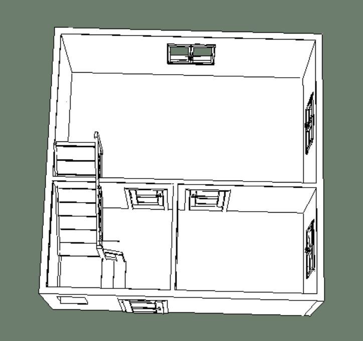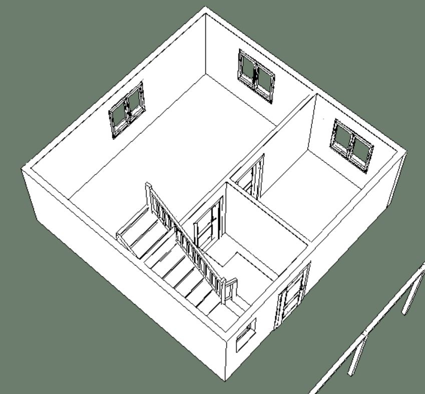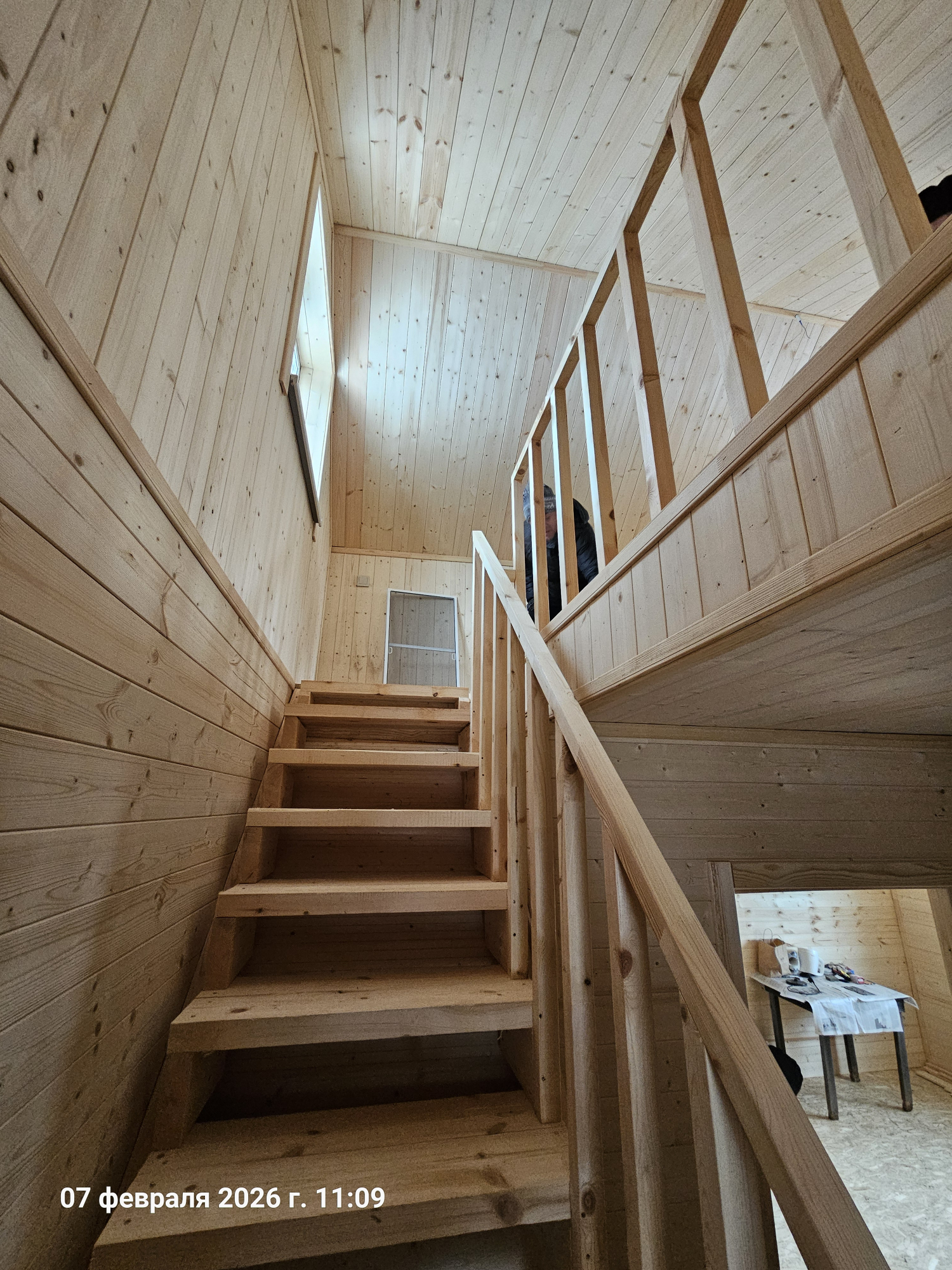 - Каркас межэтажного перекрытия: доска 50х200мм, проем под лестницу;