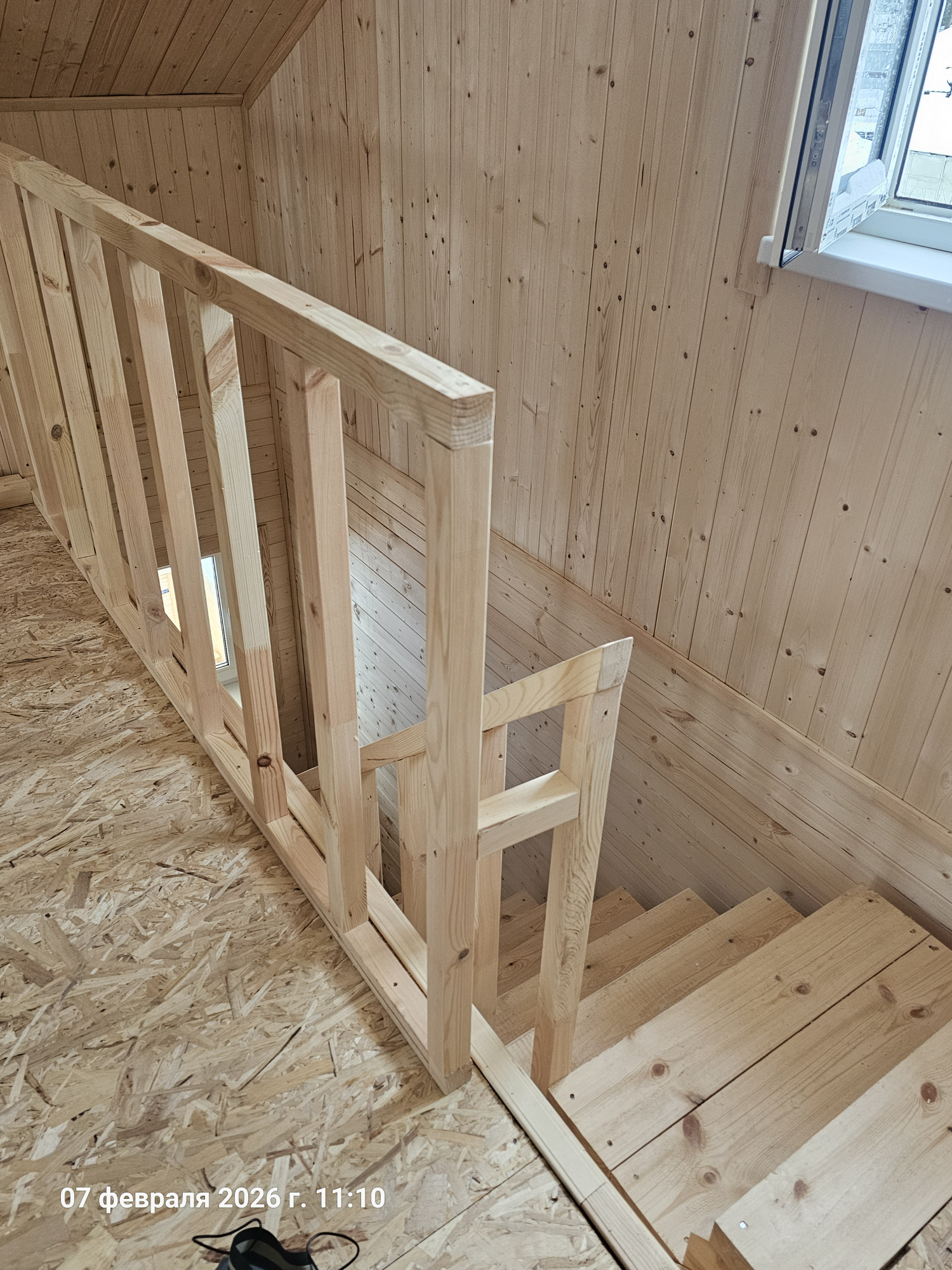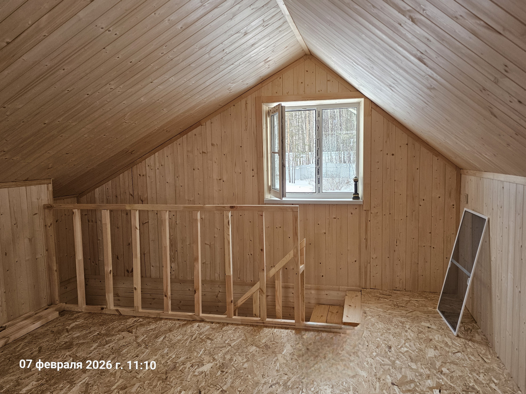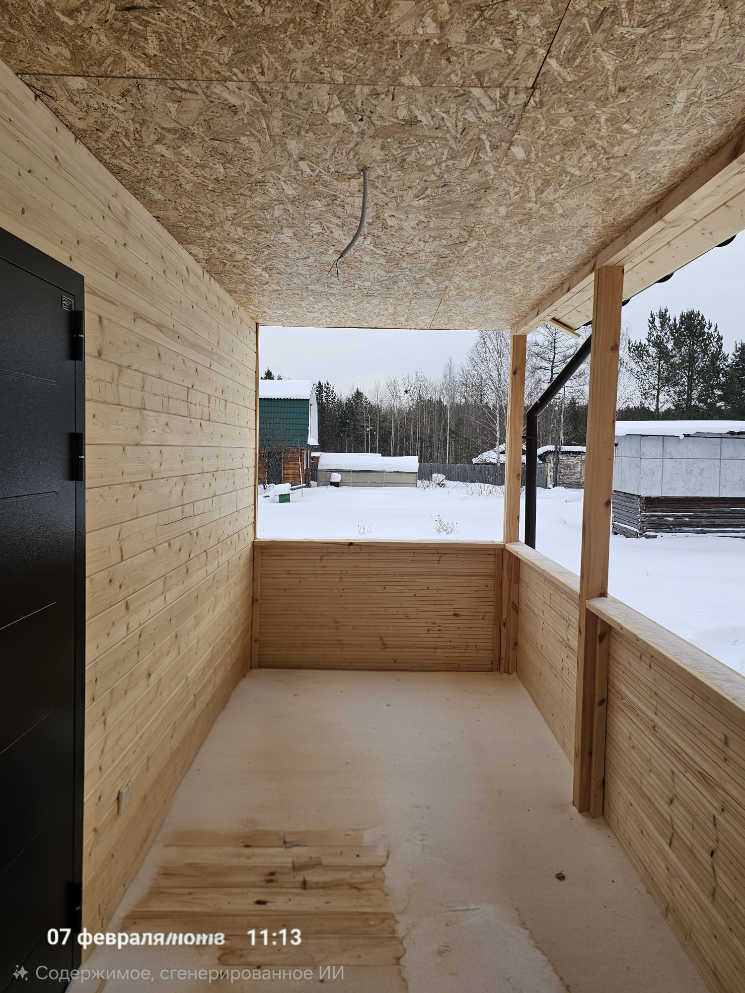 - Настил пола: плита ОСП-3 22 мм, на веранде доска террасная;