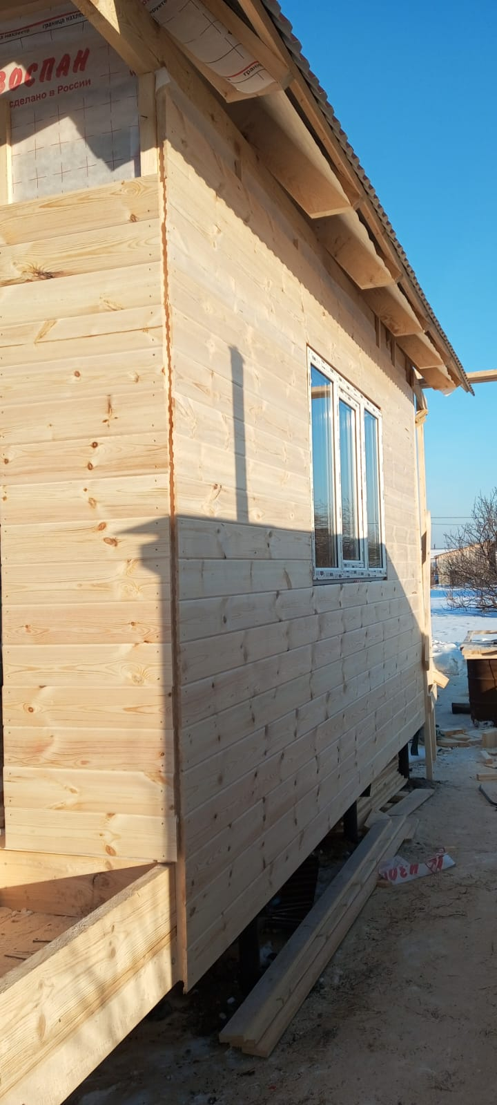 - Наружная обшивка стен: имитация бруса 135 мм сосна, сорт АБ;