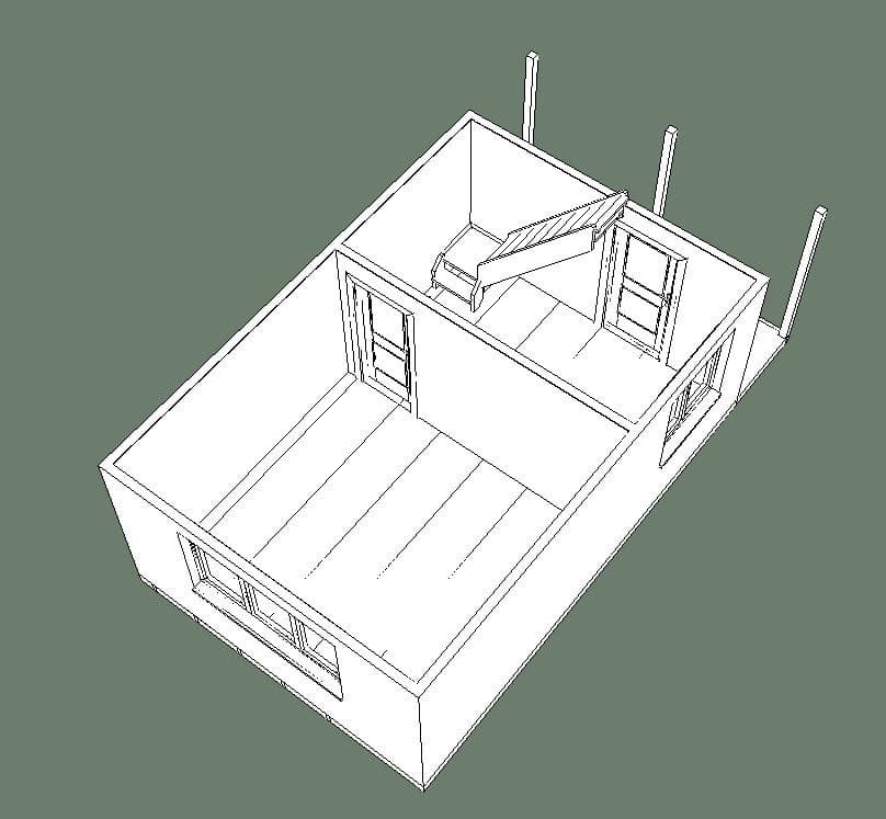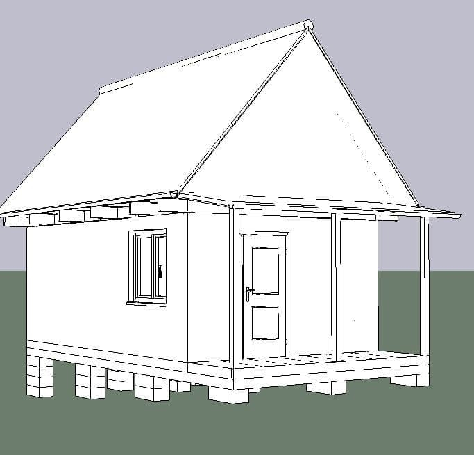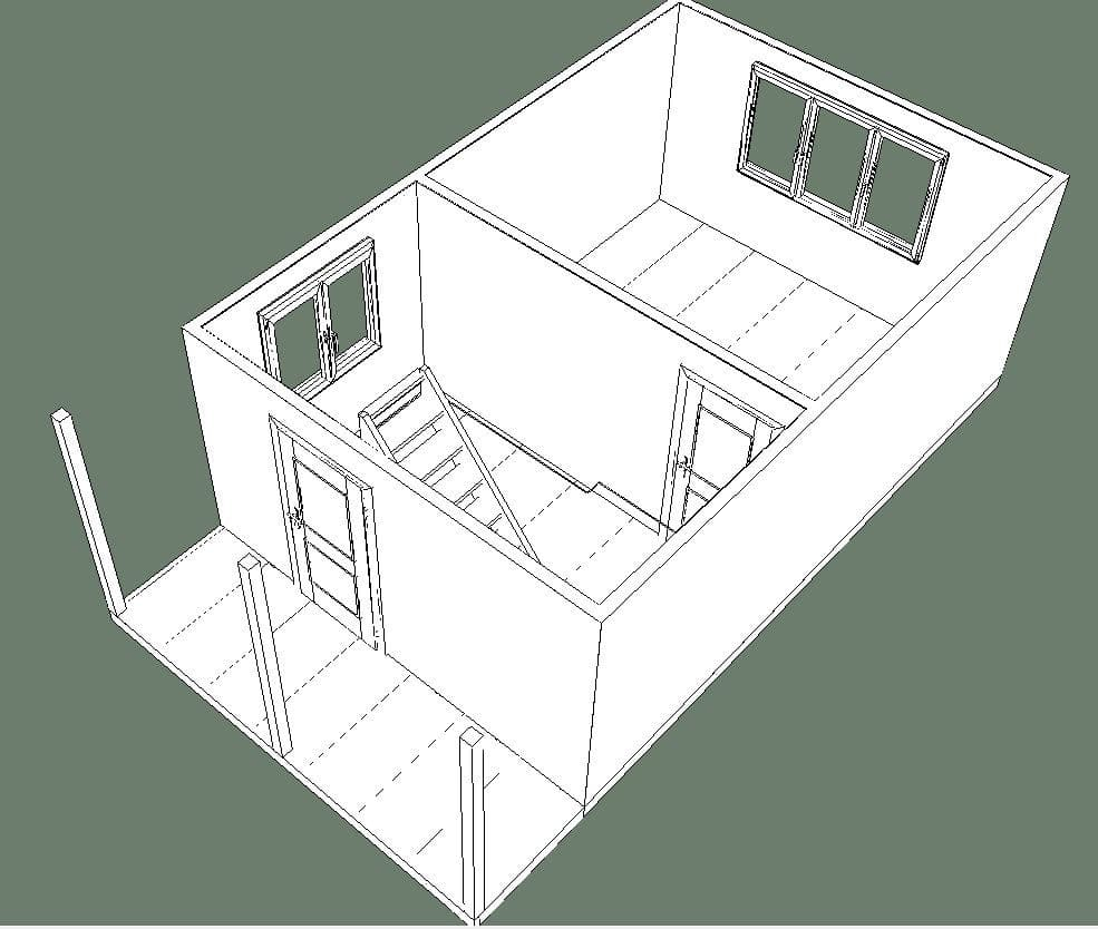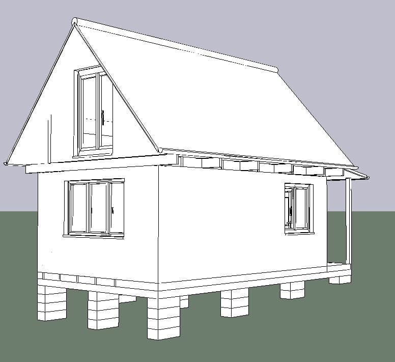 Комплектация Каркасного дома 4х6 с мансардой и открытой верандой