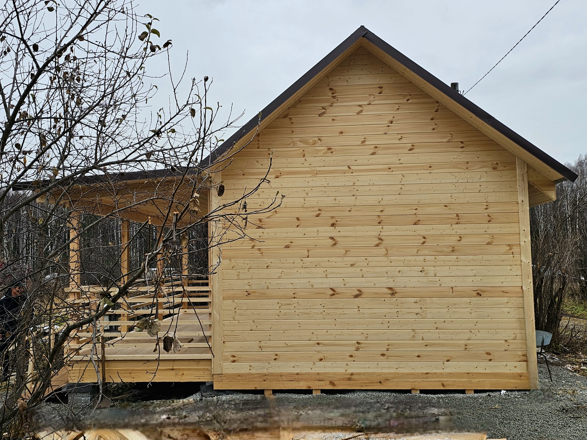 - Дополнительно: без потолка - утепленная кровля с отделкой осп3-9мм., полати 2м х м, открытая веранда под кровлей с крыльцом 2м х 6м.