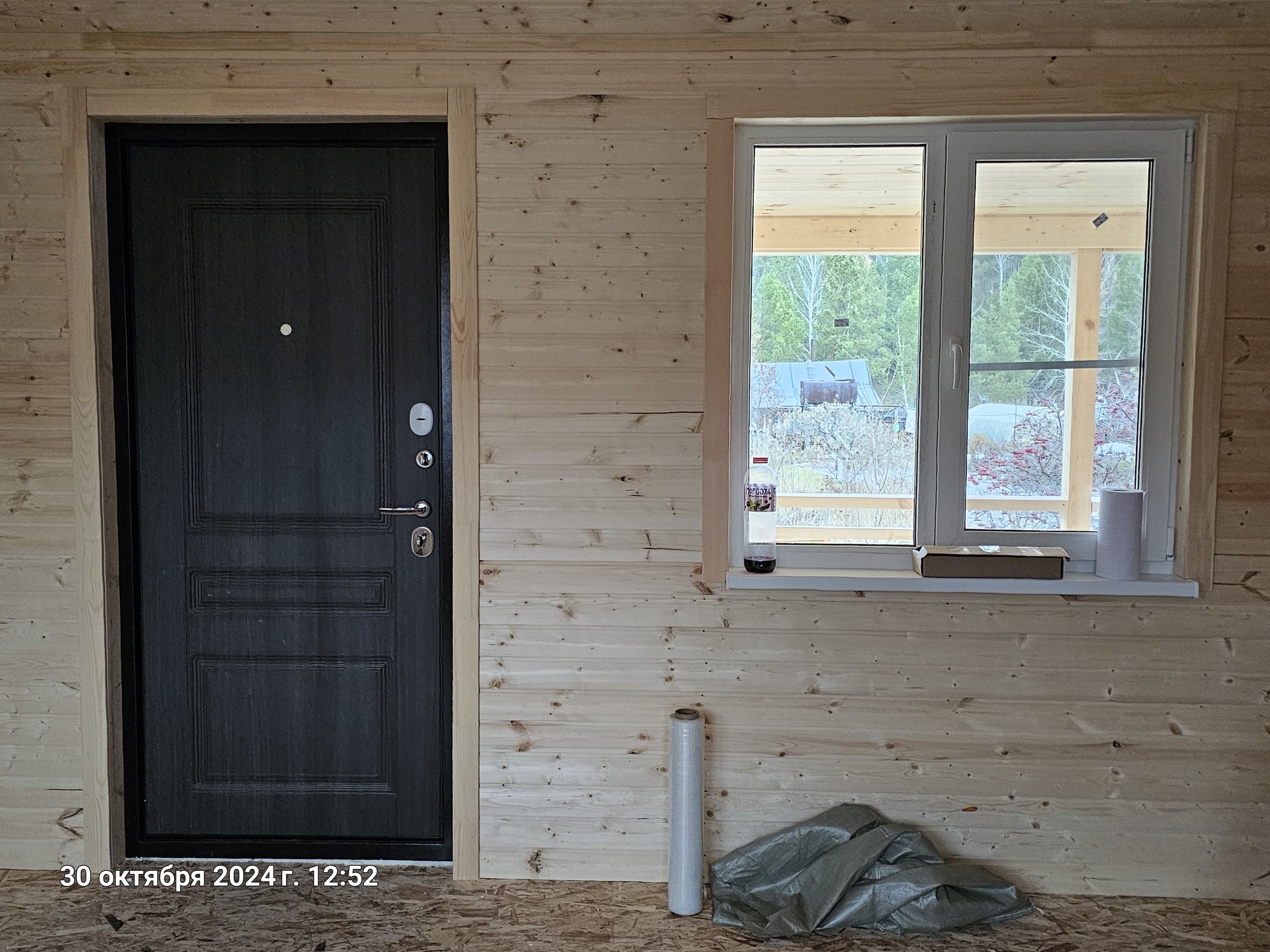 - Окно: 3шт — профиль REHAU 3 камерный, стеклопакет 1 камерный, подоконник, слив, откосы, обналичка, антимоскитная сетка;