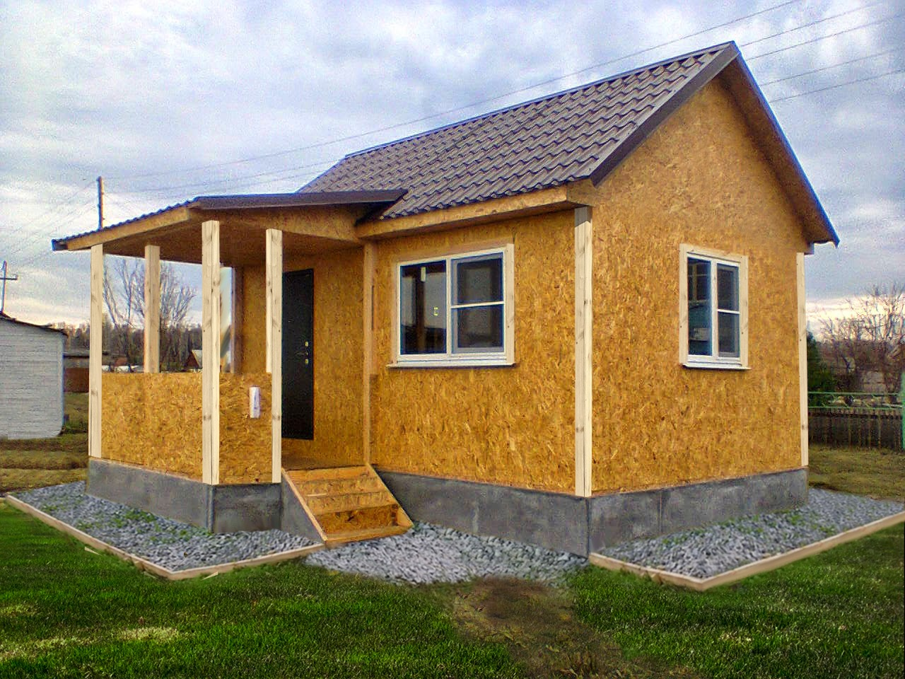 - Дополнительно: крыльцо 2м х 1.3м с перилами и кровлей, фундамент отсыпан и обшит плоским шифером