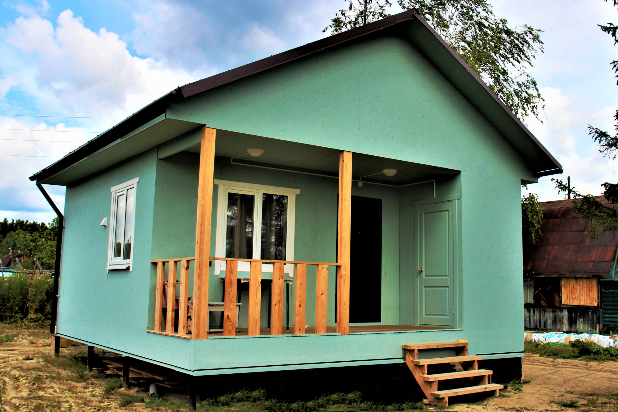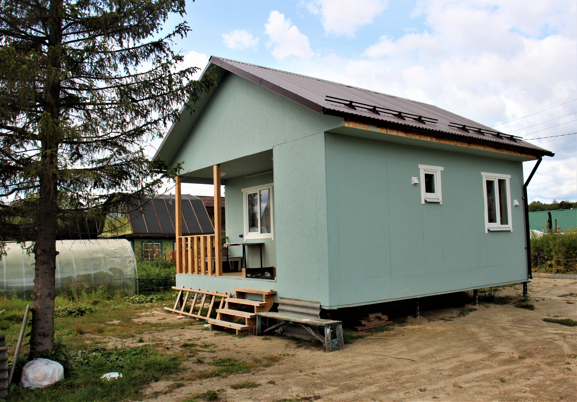 Каркасный дом 5х6 с террасой и кладовой под одной кровлей, СНТ Виктория (Широкая речка)