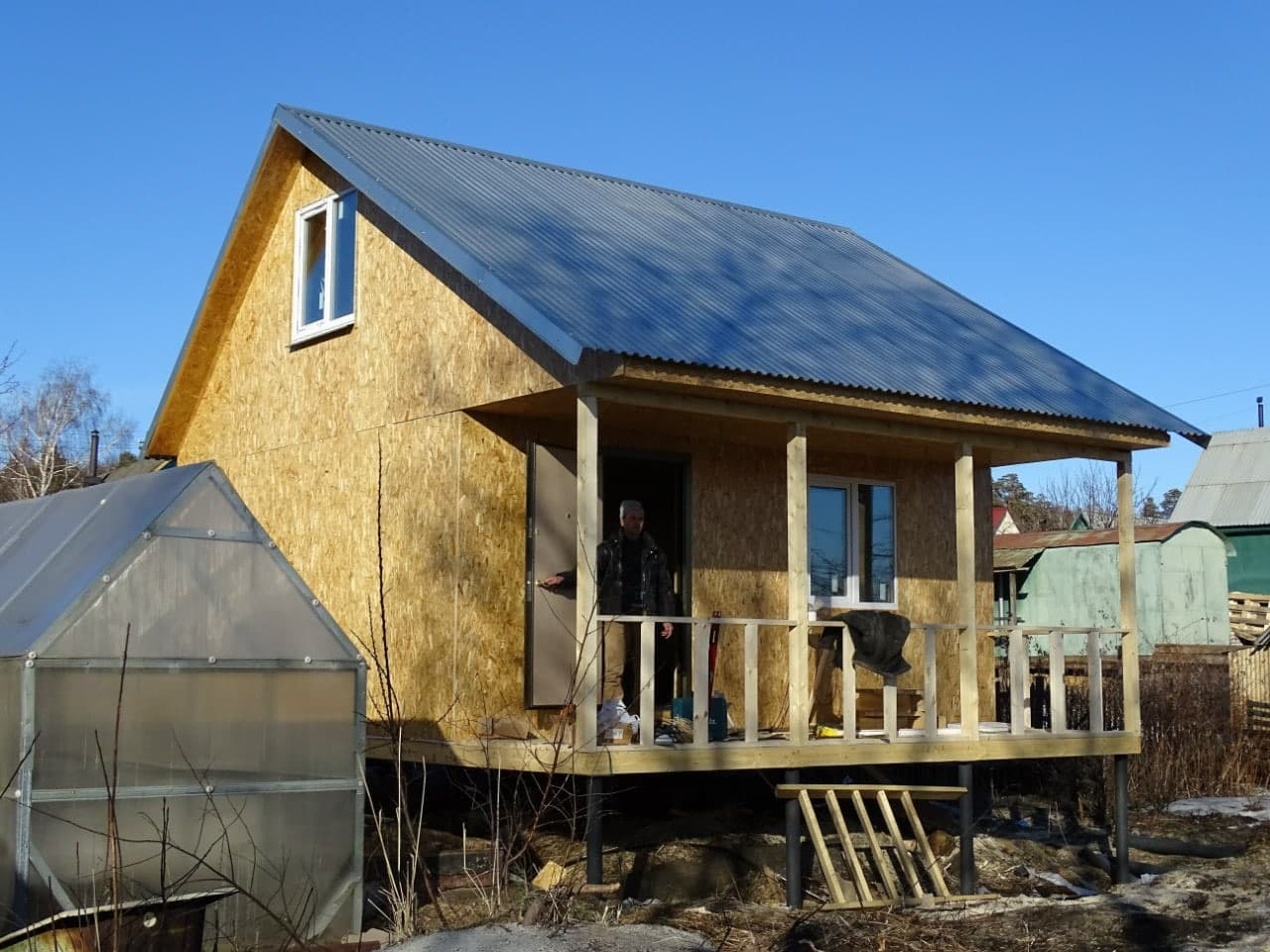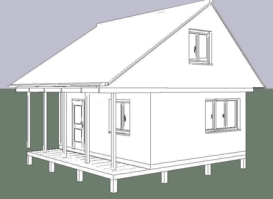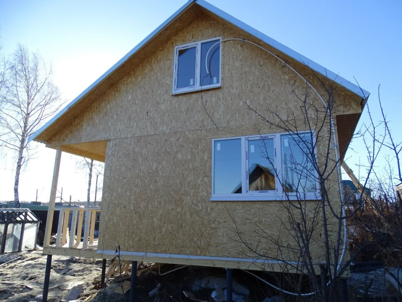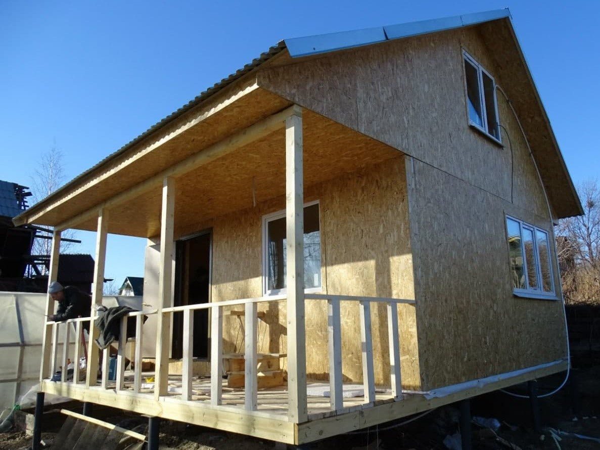 Каркасный дом 5х6 с мансардой и открытой верандой, СНТ Надежда