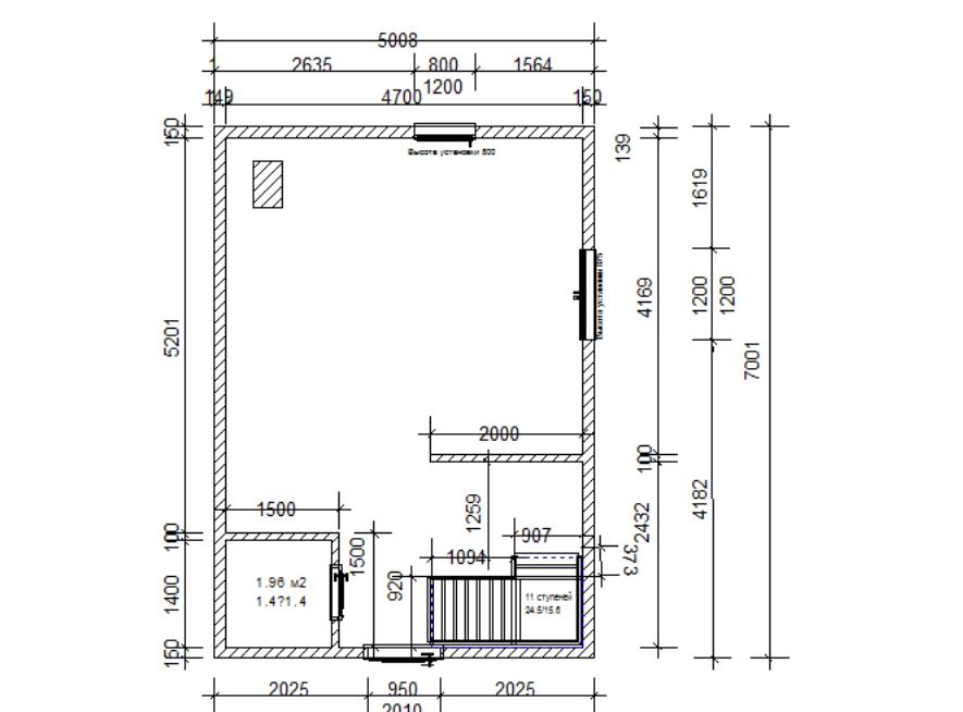 - Каркас стен: высота 2500 мм, толщина 150 мм; доска 50х200 мм;