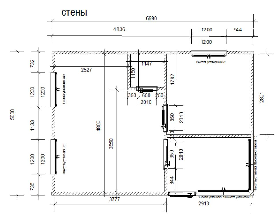 - Каркас стен: высота 2500 мм, толщина 100 мм; доска 50х100 мм;