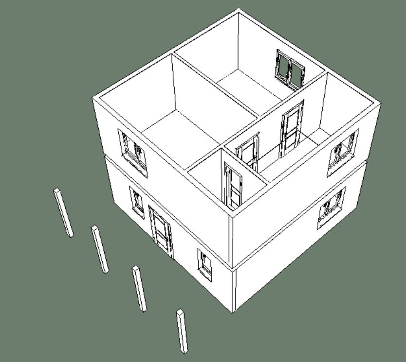 - Каркас стен: высота 2500 мм; толщина 150 мм (оба этажа);