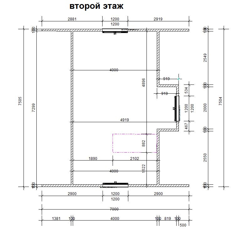 - Каркас стен: высота 2500 мм, толщина 100 мм; доска 50х100 мм;