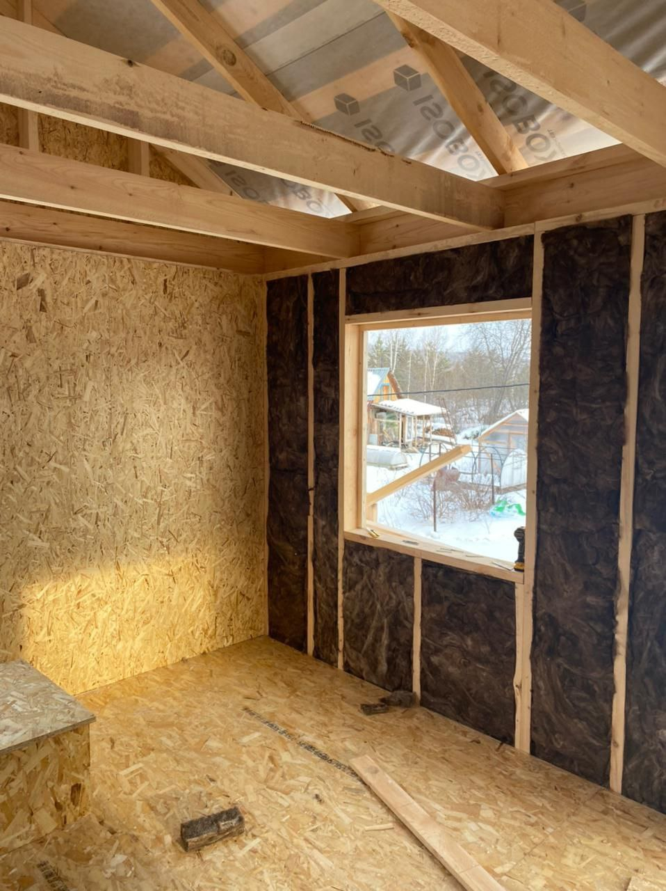 - Внутренняя обшивка стен: плита ОСП-3 9 мм;