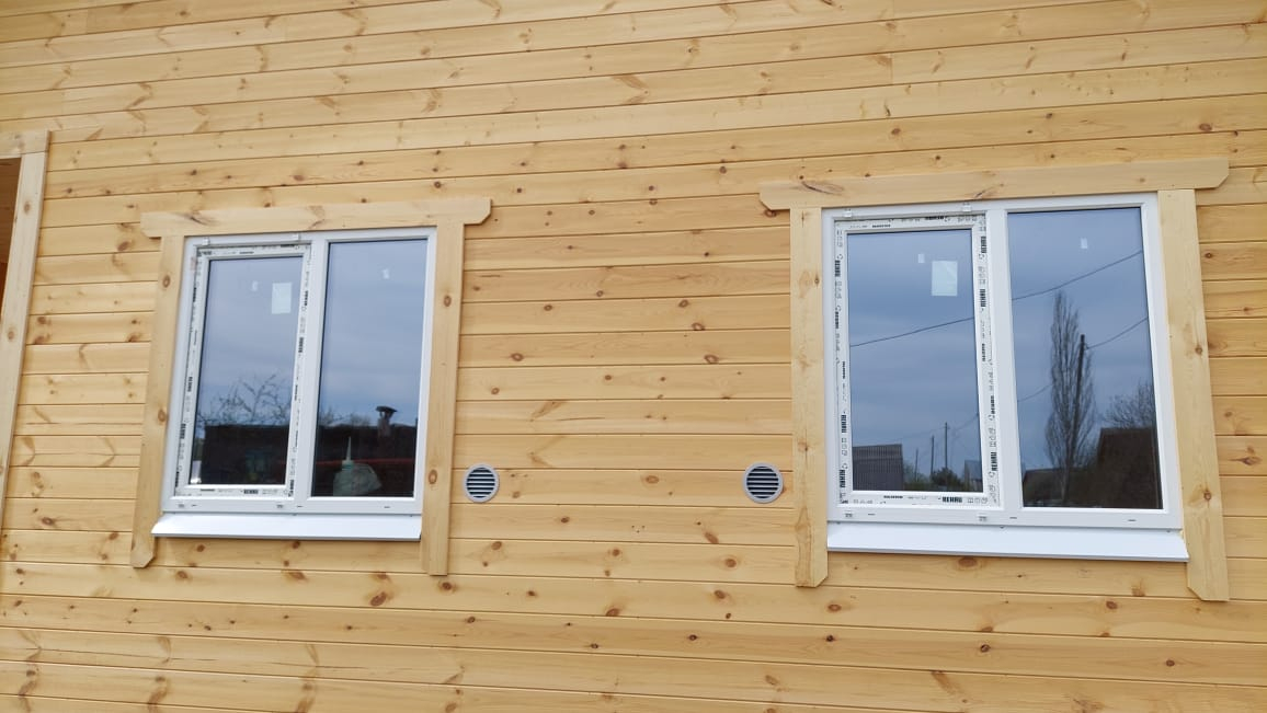 - Окно: 5шт — профиль REHAU 3 камерный, стеклопакет 2 камерный, подоконник, слив, откосы, обналичка, антимоскитная сетка;