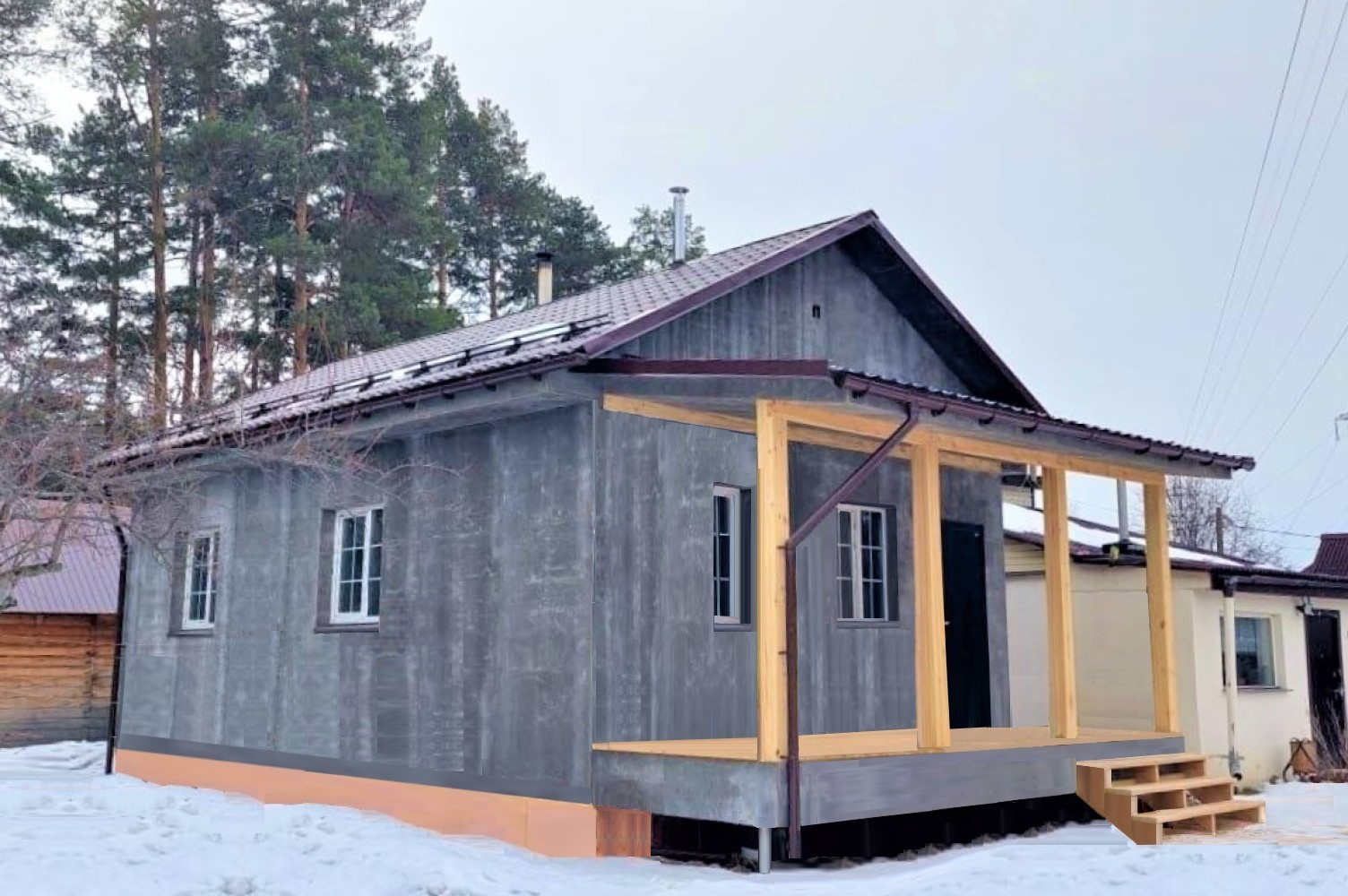 - Фундамент: предоставлен заказчиком, только утепление; под веранду - сваи 2500/6/200/89 мм;