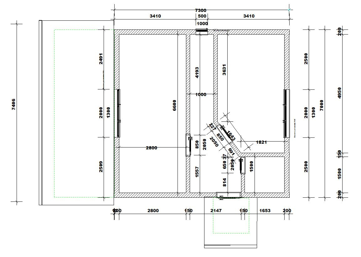 - Дополнительно: веранда 2.5м х 7м, крыльцо 1.5м х 1.5м с кровлей