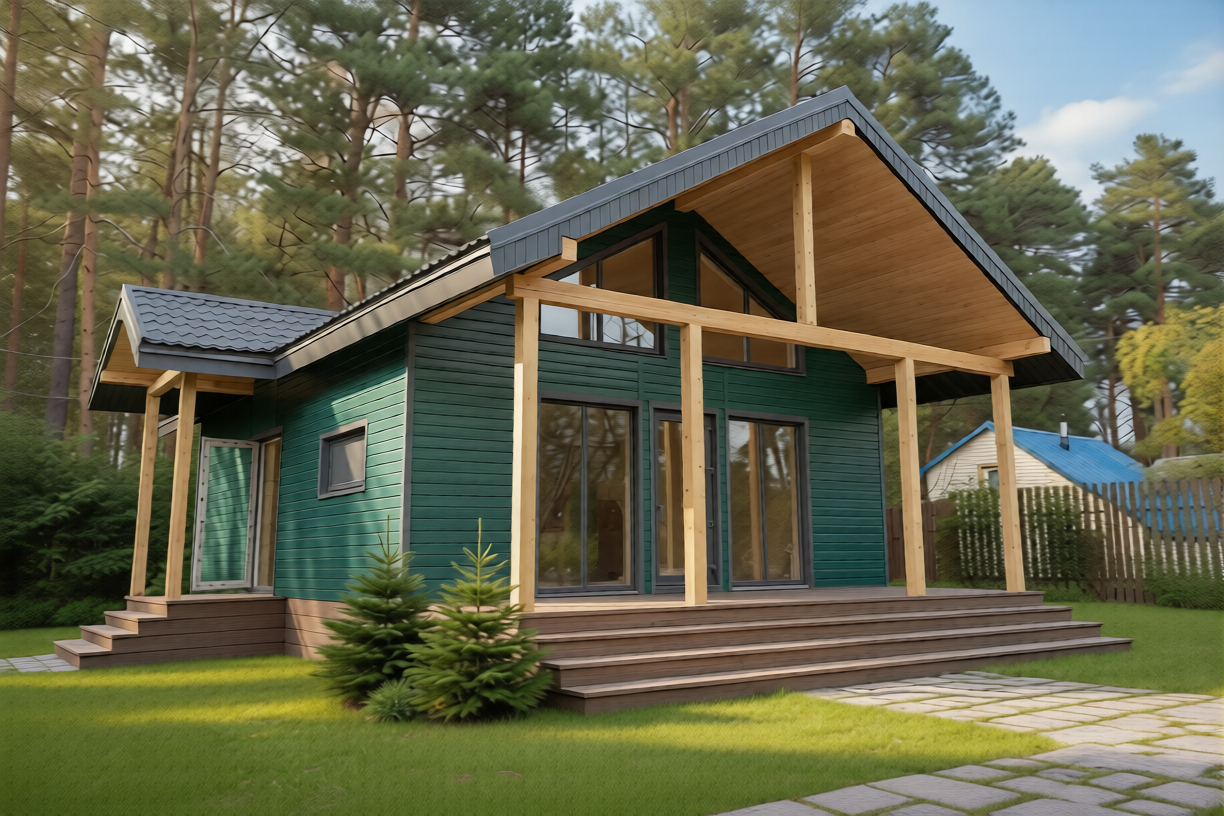 Каркасный дом 7х9 с верандой 2.5х7м и крыльцом 1.5х2.5м
