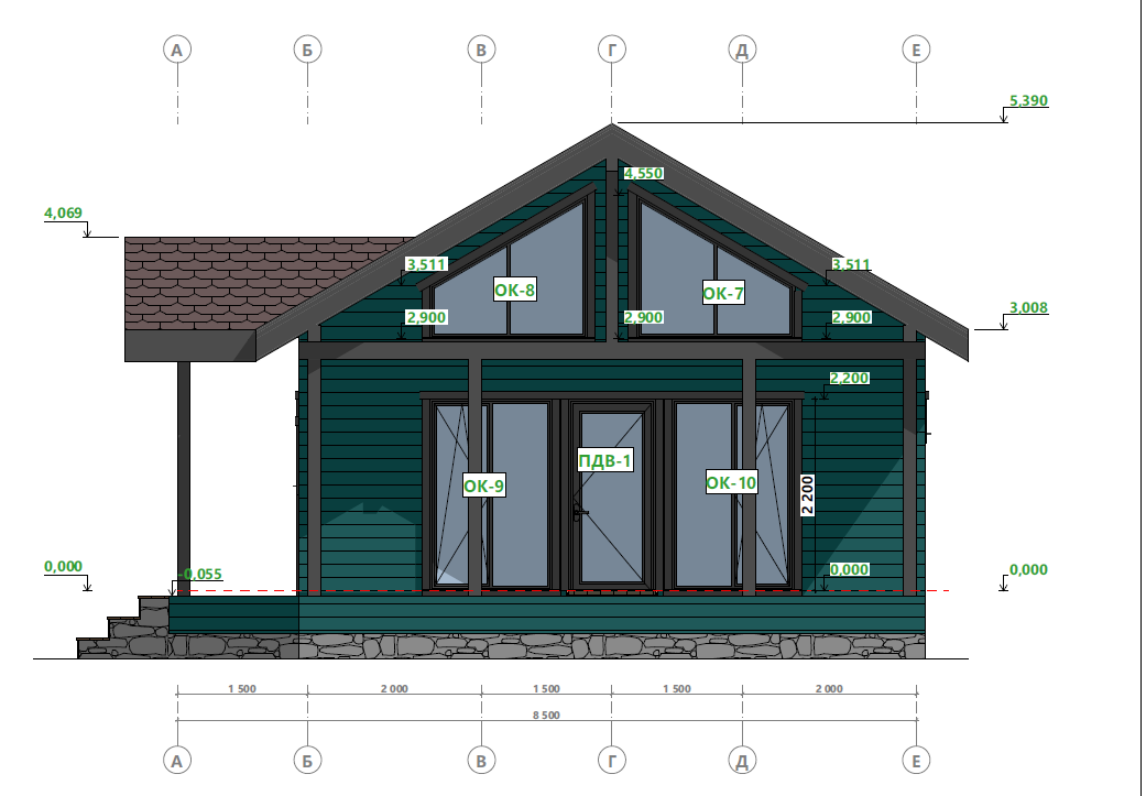 - Дополнительно: веранда 2.5м х 7м, крыльцо 1.5м х 2.5м с кровлей