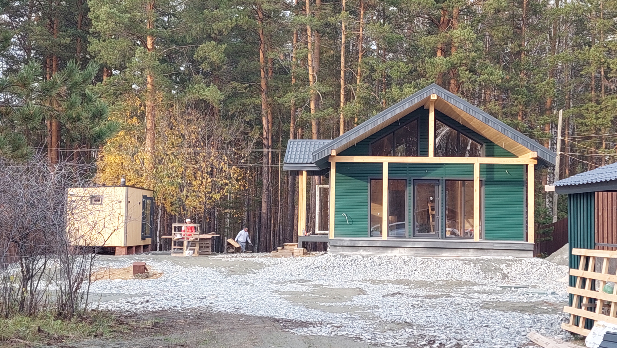 - Наружная обшивка стен: металлосайдинг брус "Короед" 0.50 цвет «зеленый мох» ral 6005;
