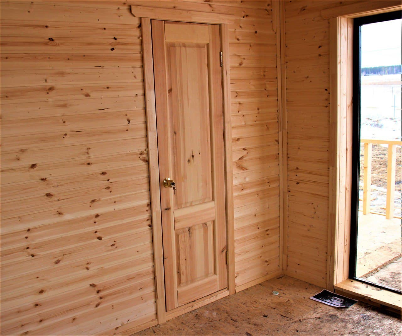 - Двери: дверь входная — сейф подъездная, межкомнатные — филенчатые, в парилку — банная, липа;