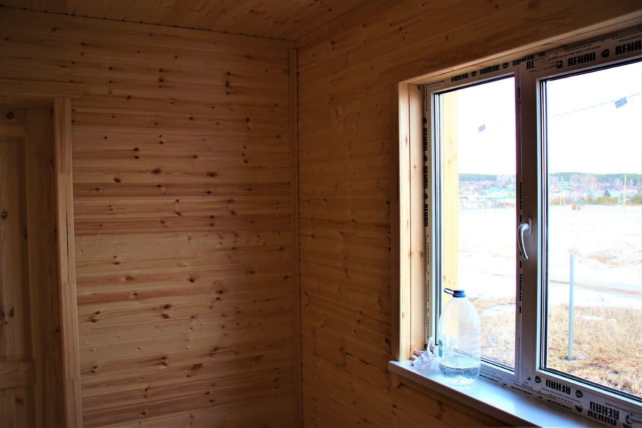 - Окно: 3шт — профиль REHAU 3 камерный, стеклопакет 2 камерный, подоконник, слив, откосы, обналичка, антимоскитная сетка;