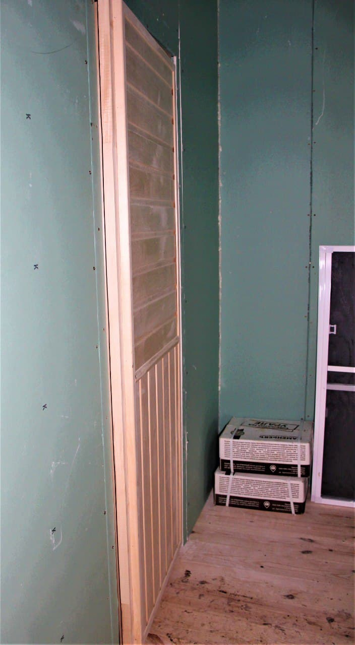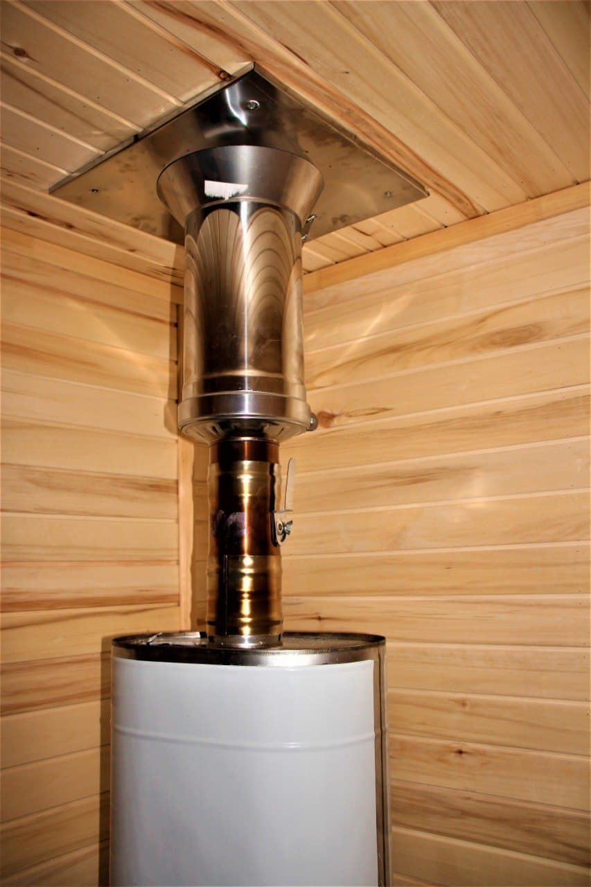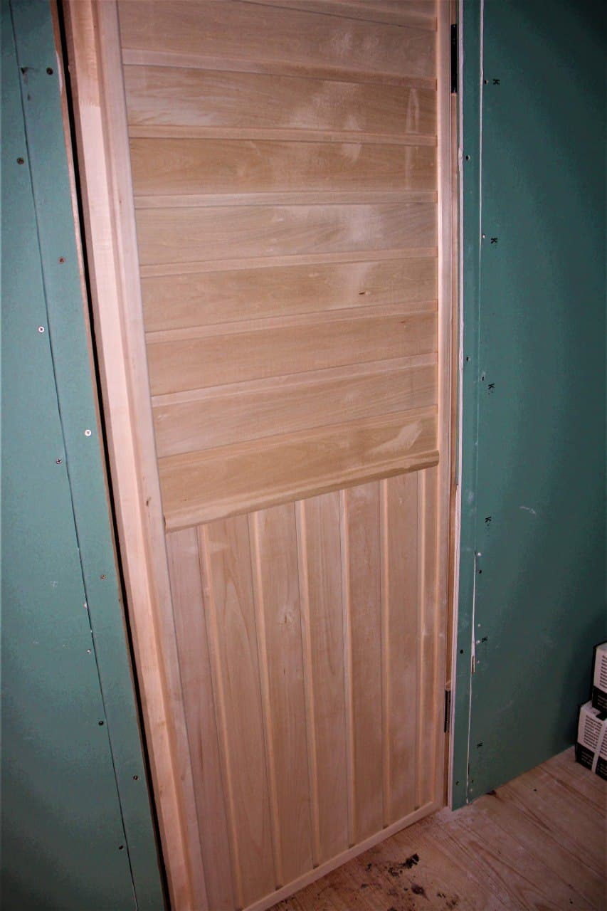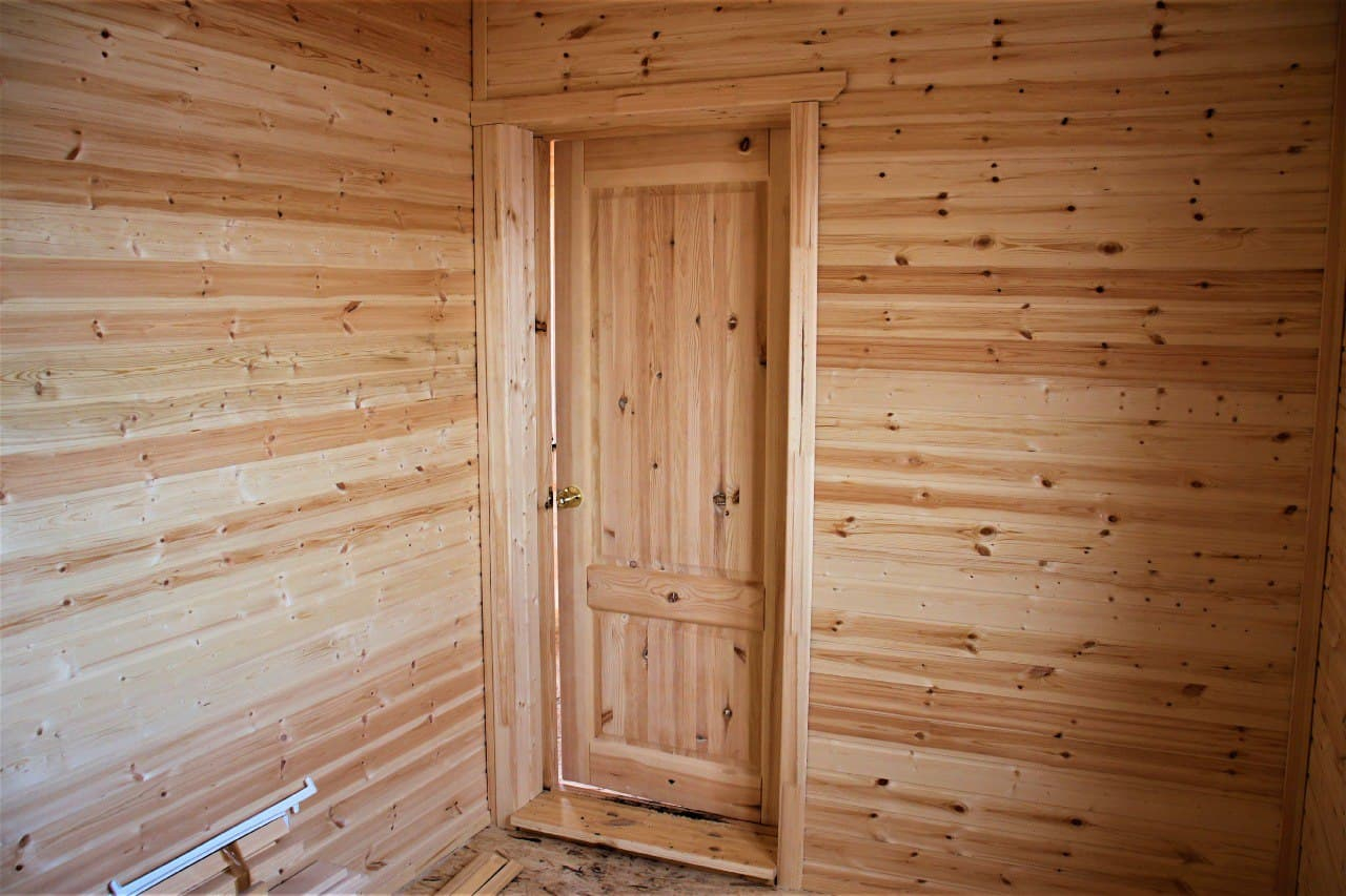 - Внутренняя обшивка стен: евровагонка сосна, сорт АВ; парилка — осина; комната отдыха — лист ГКЛ влагостойкий;