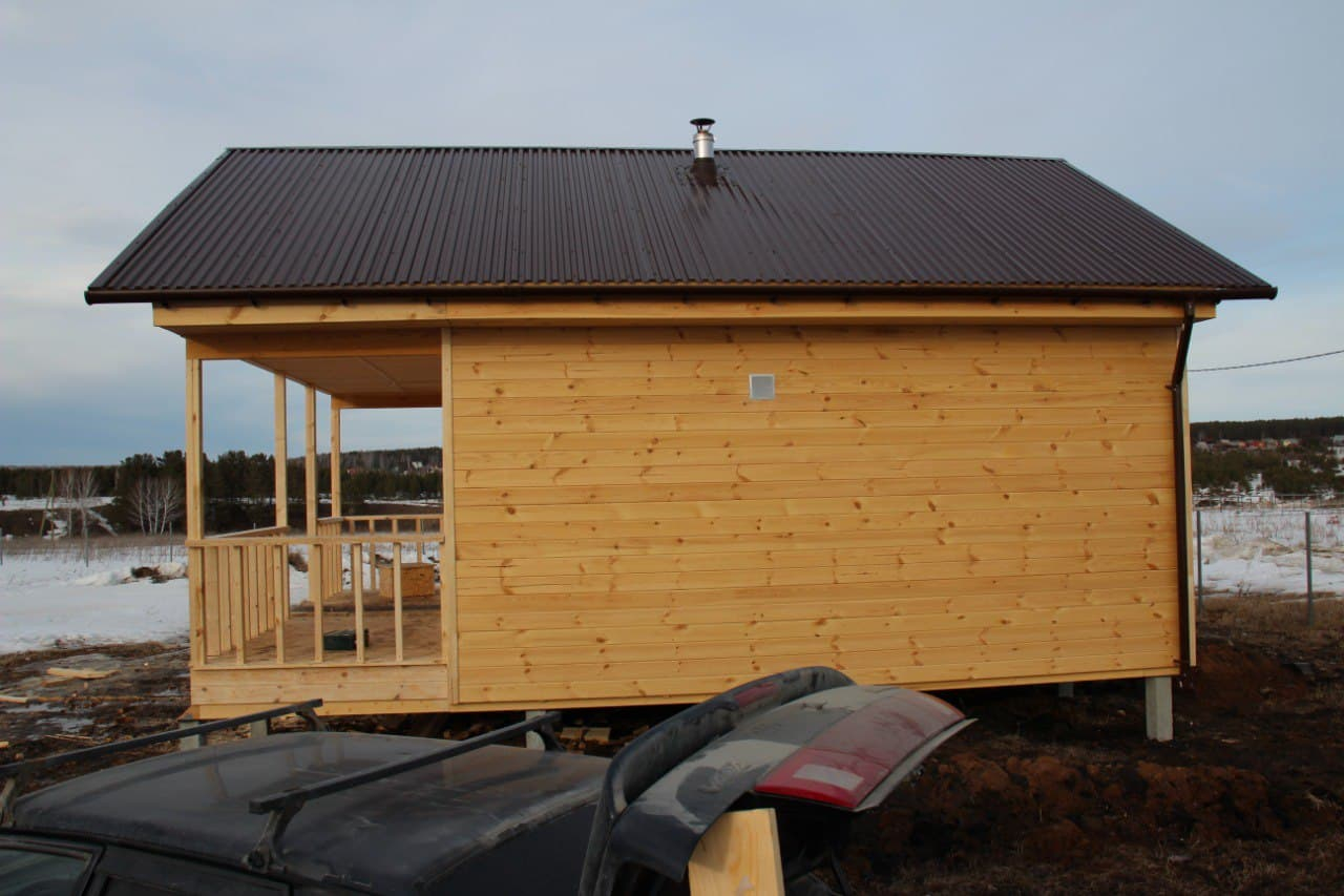 Каркасный дом-баня 6х6 с верандой под одной кровлей, село Колюткино