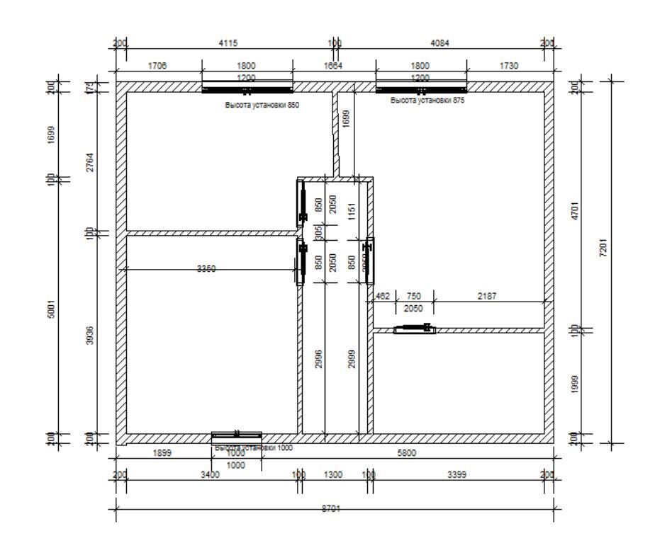 - Перегородки 100мм.