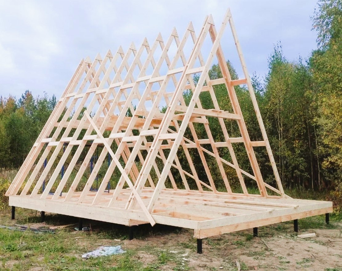 Стропила А-образные арки: доска строганая камерной сушки из хвойных пород, сорт 1-3