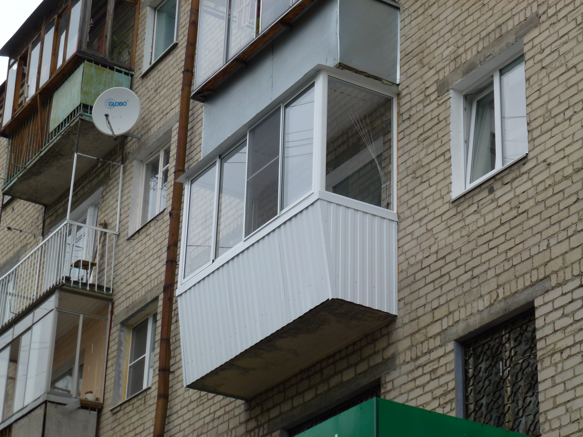 Стандартный балкон в доме "хрущевской" застройки. Типовые размеры 3.2м х 0.8м, высота 1.6м. Всегда рекомедуем сделать вынос по подоконнику, что увеличит полезную площадь балкона.