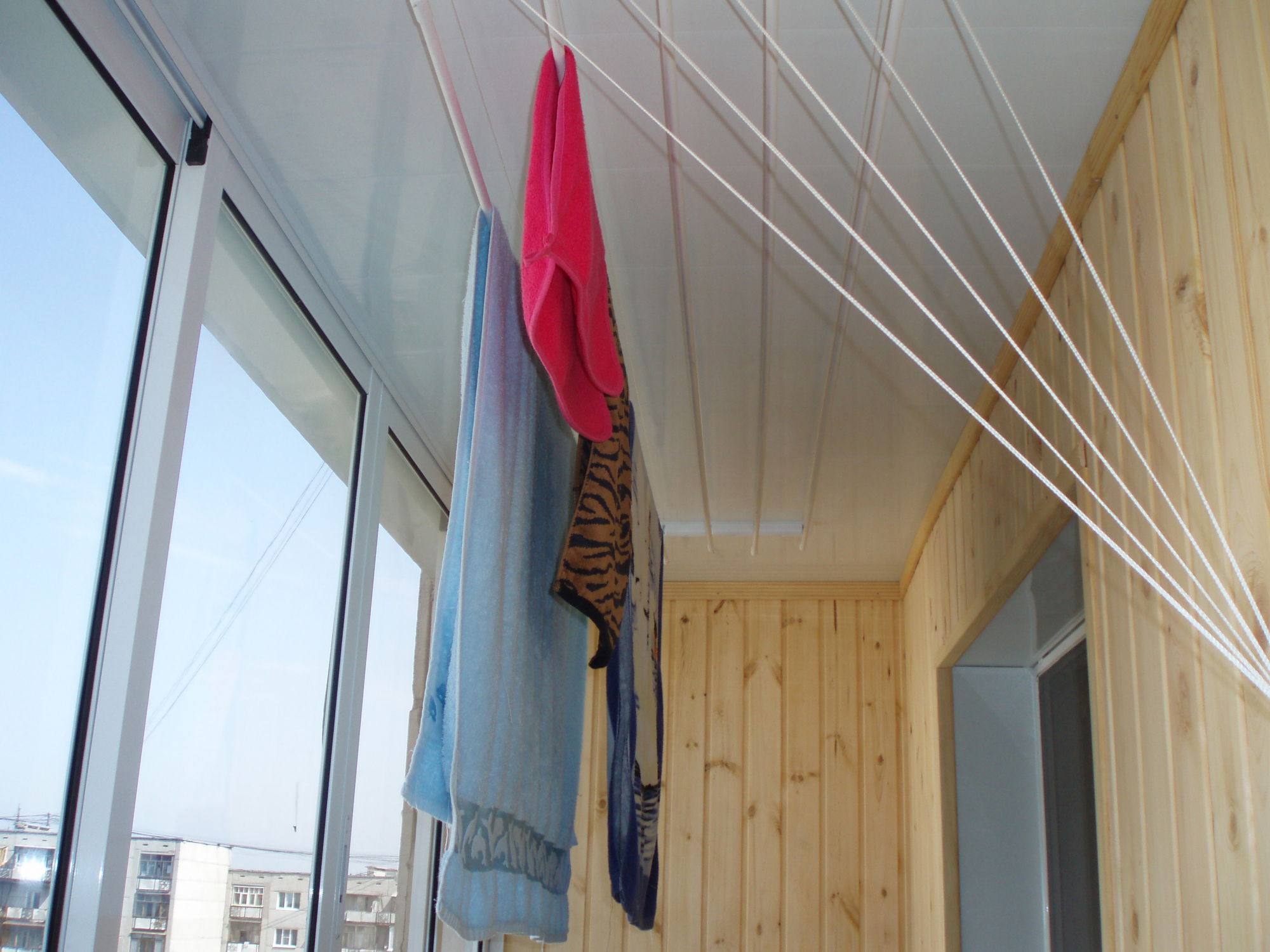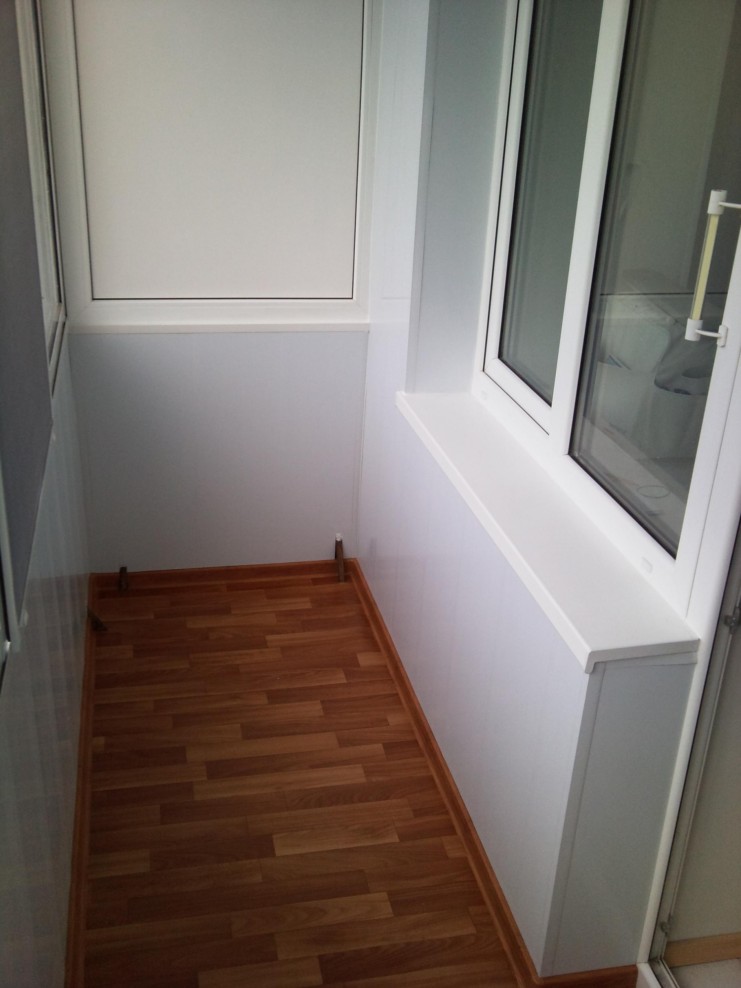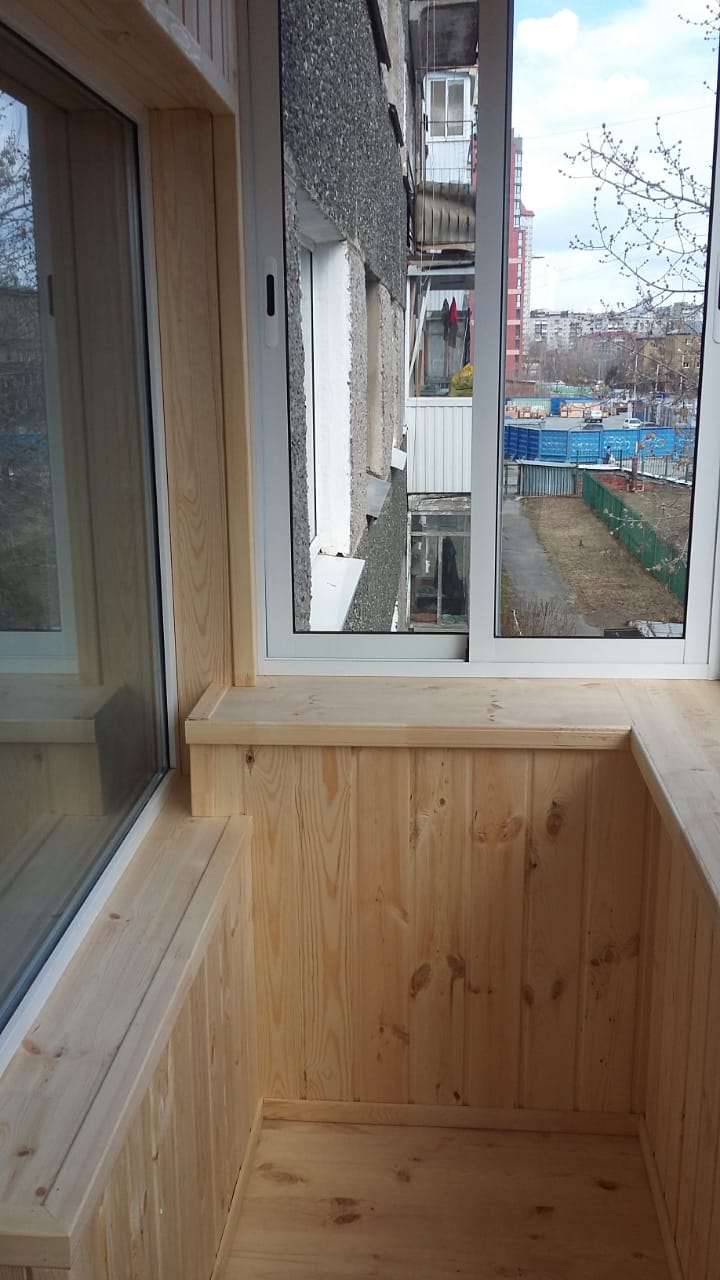 Очень неплохо, сделать внутренние отделочные работы. Мы собрали несколько вариантов в фотографиях, как может выглядеть ваш балкон изнутри. Может быть - отделка деревом или пластиковыми панелями. Можно установить шкаф или тумбу, предусмотреть потолочную сушилку для белья.