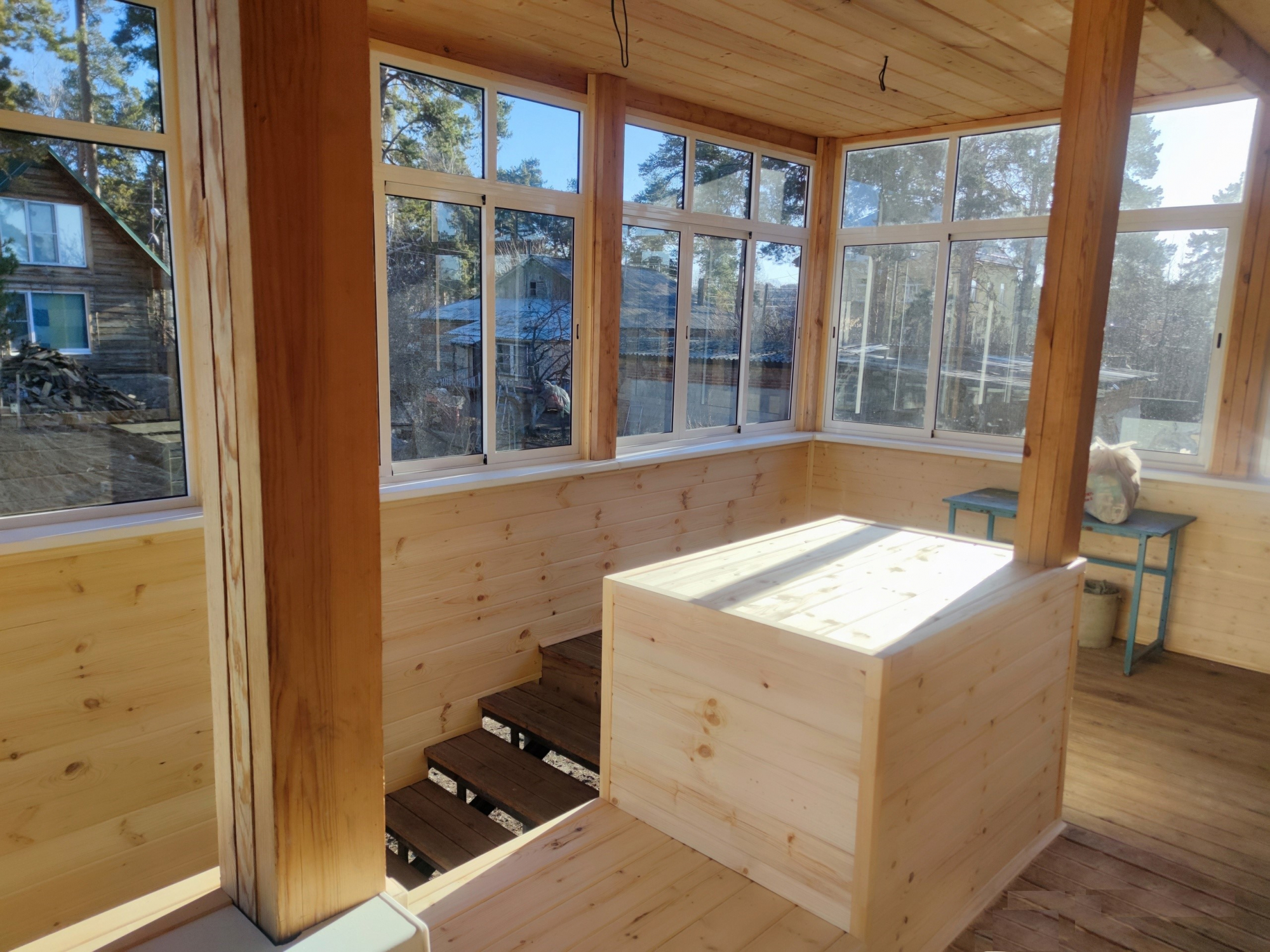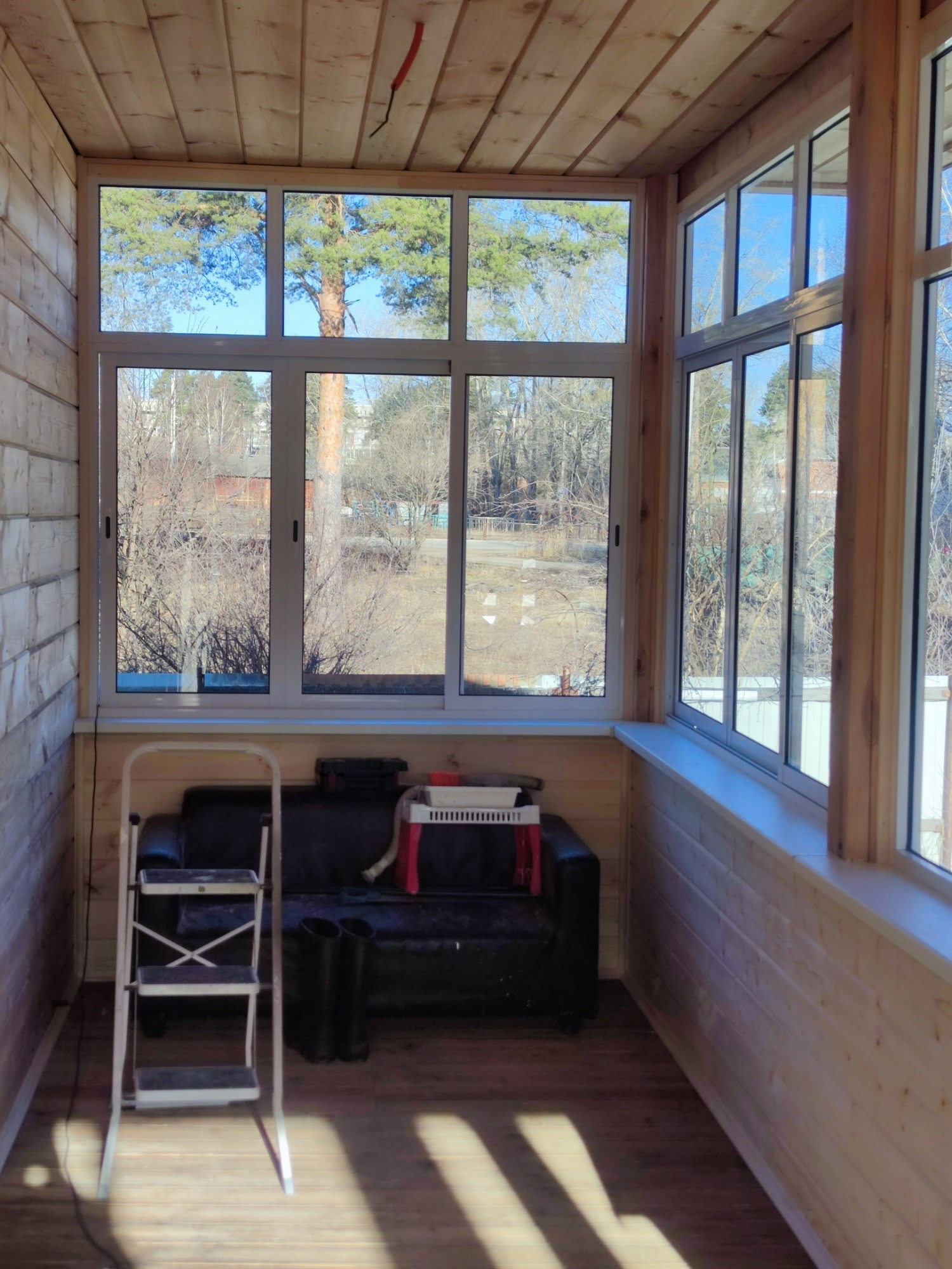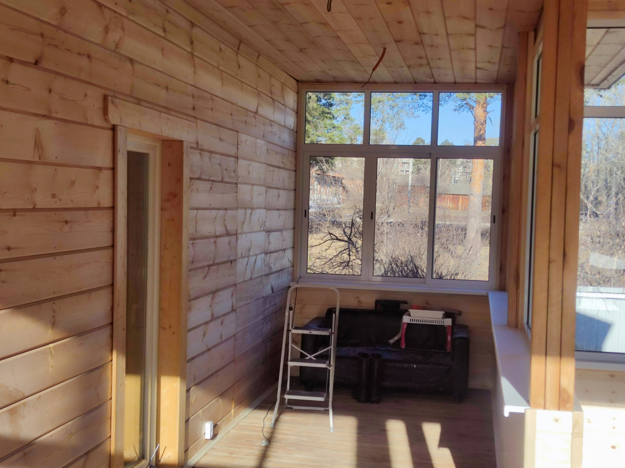 Остекление веранды раздвижной алюминиевой системой с горизонтальным импостом
