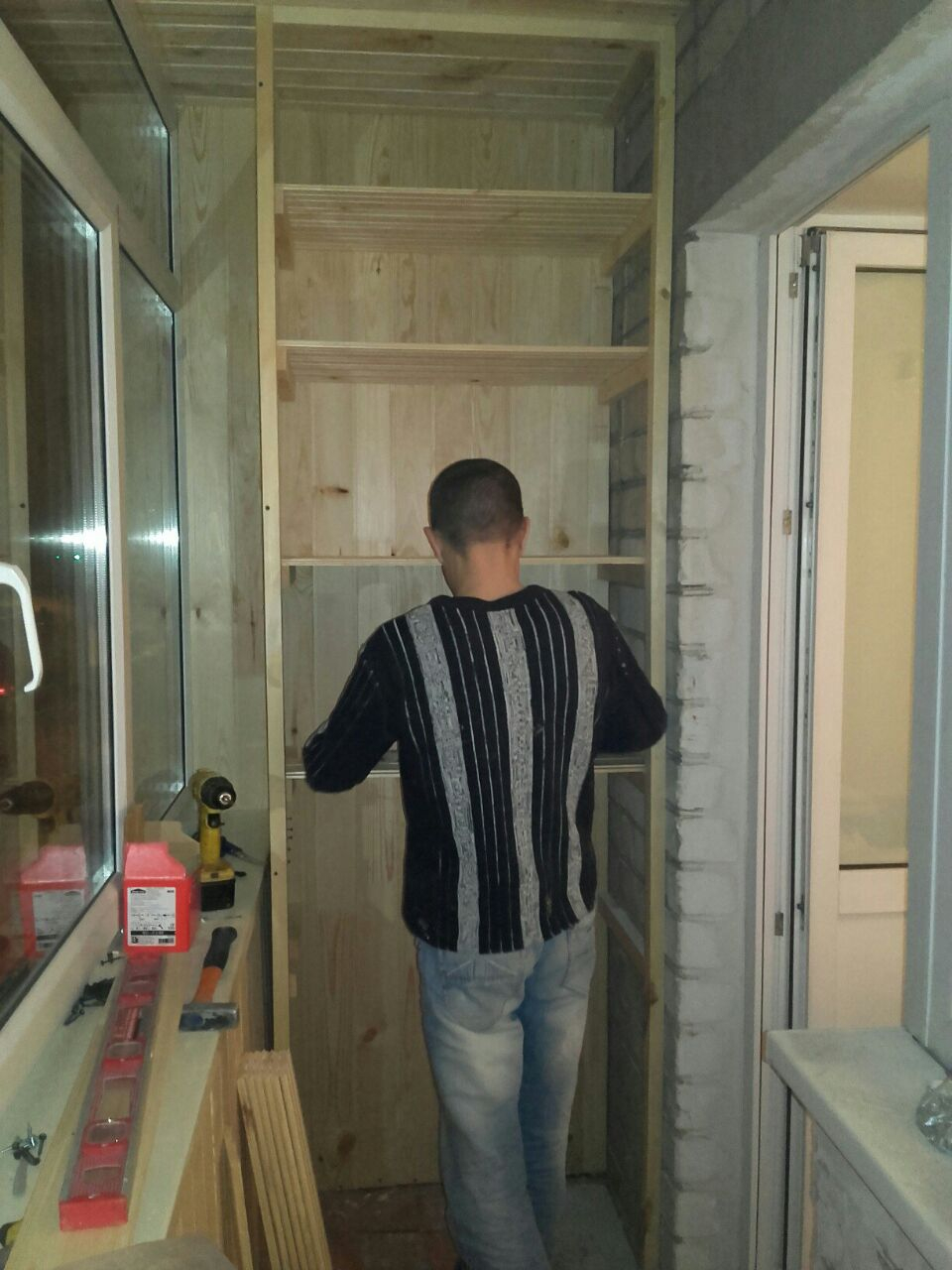 Кроме того, перила предварительно обшиты экструдированным пенополистиролом 30мм, локализованы все щели. И сделаны шкафы в потолок, высотой 2600мм и глубиной 750мм.