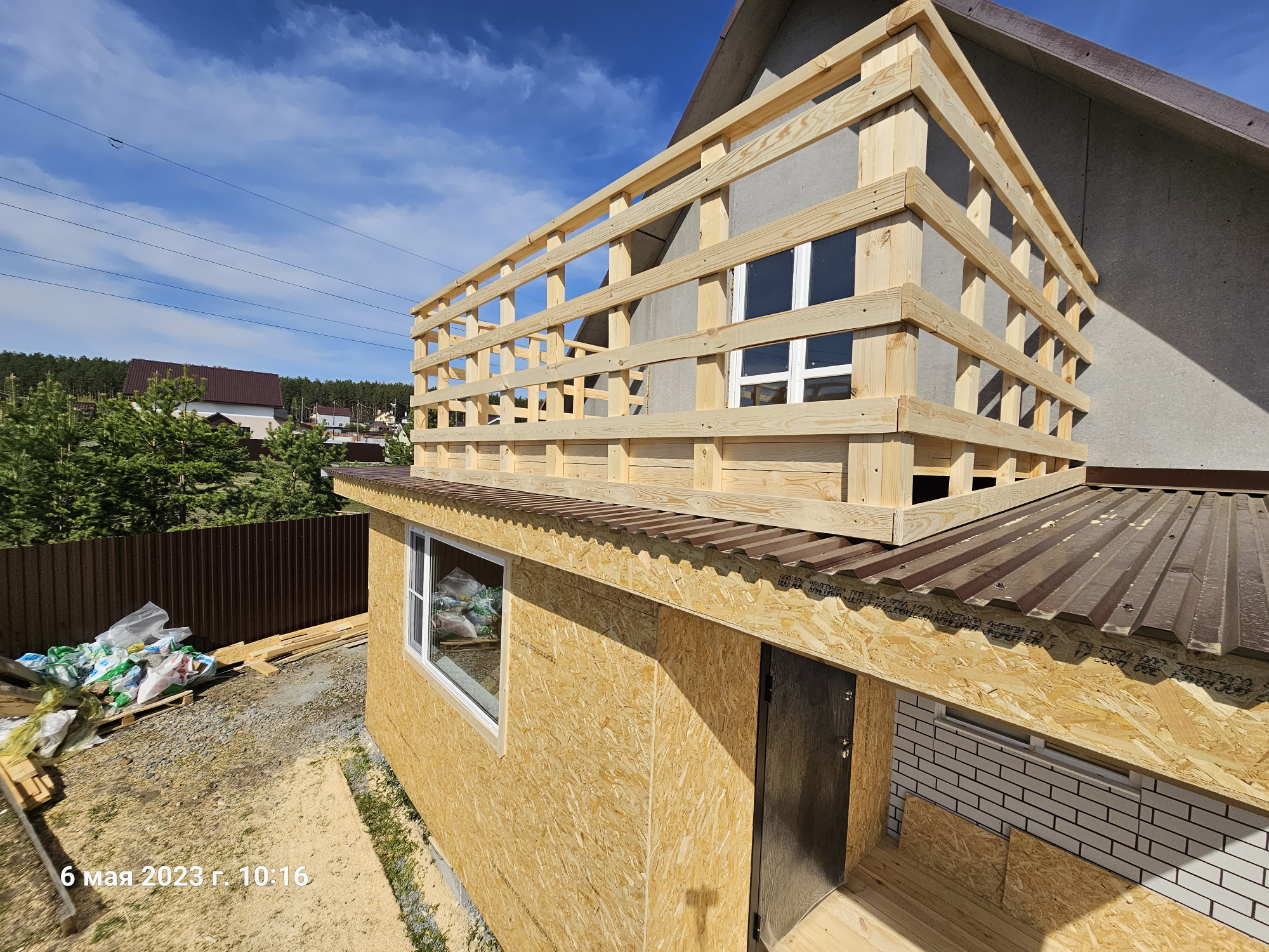 Пристрой каркасный 2.5м х 7.6м с балконом 2.5м х 4м, СНТ Дачное (Сысертский р-н)