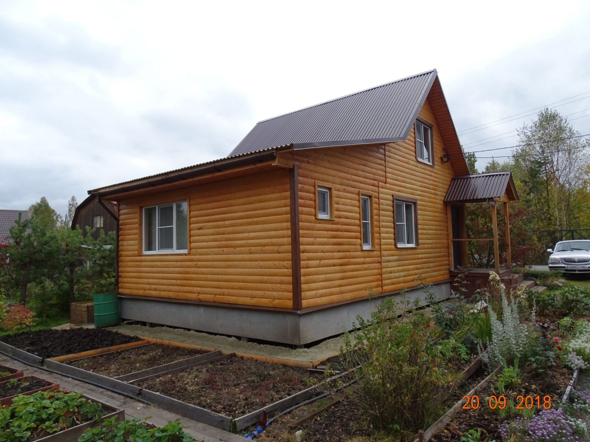 - Дополнительно: усиление фундамента – уголок металлический; обшивка фундамента – плоский шифер; водосточная система;