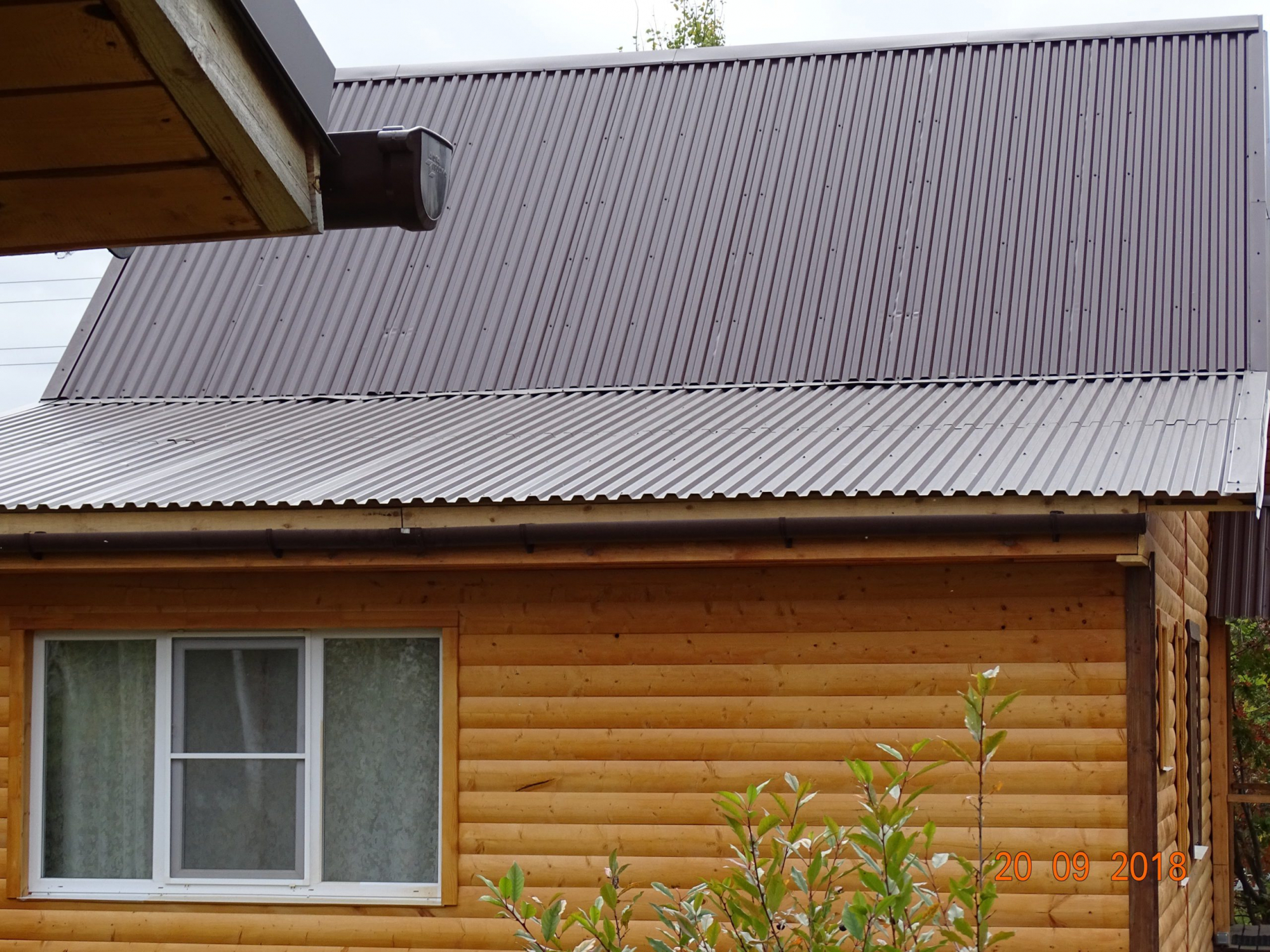 - Кровля: двухскатная, профилированный лист с-21 0.45 цвет «шоколад»;