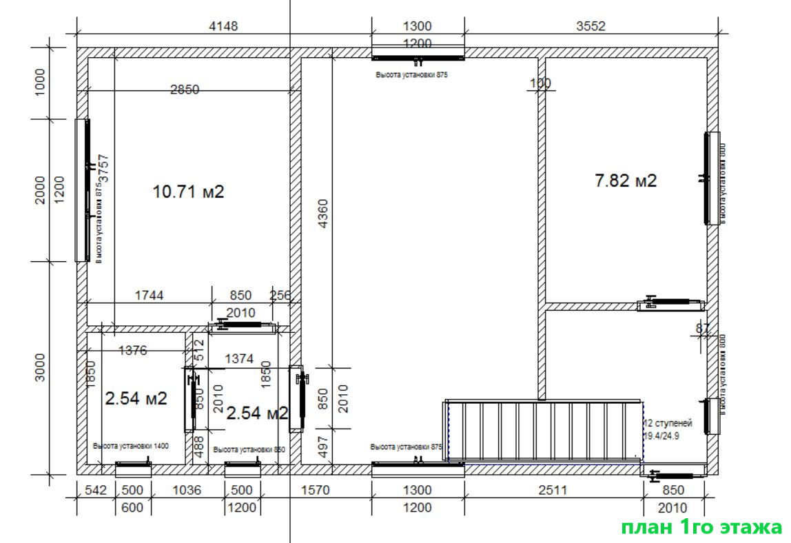 - Каркас стен: высота 2500 мм; толщина 150 мм