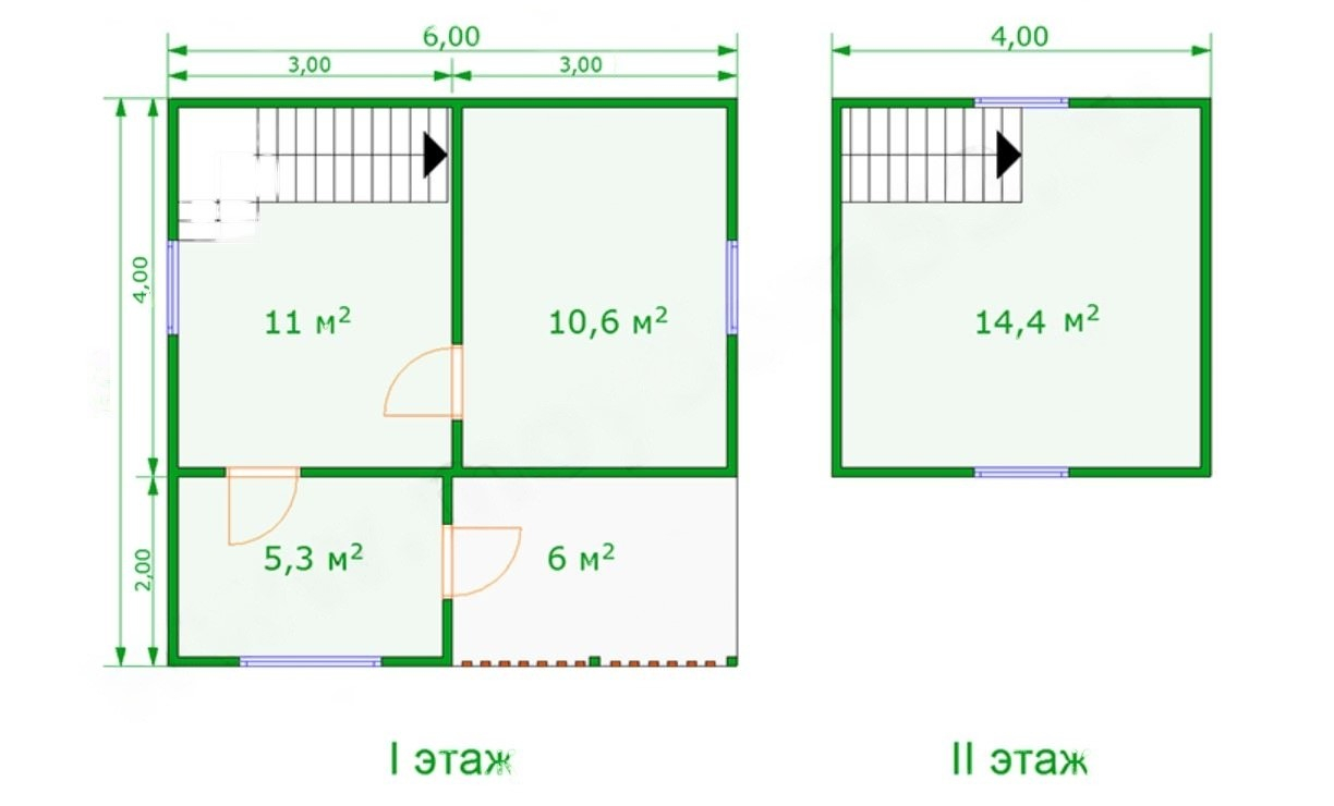 Проект каркасного дома 4м х 6м с мансардным этажом 4м х 4м и верандой 2м х 6м