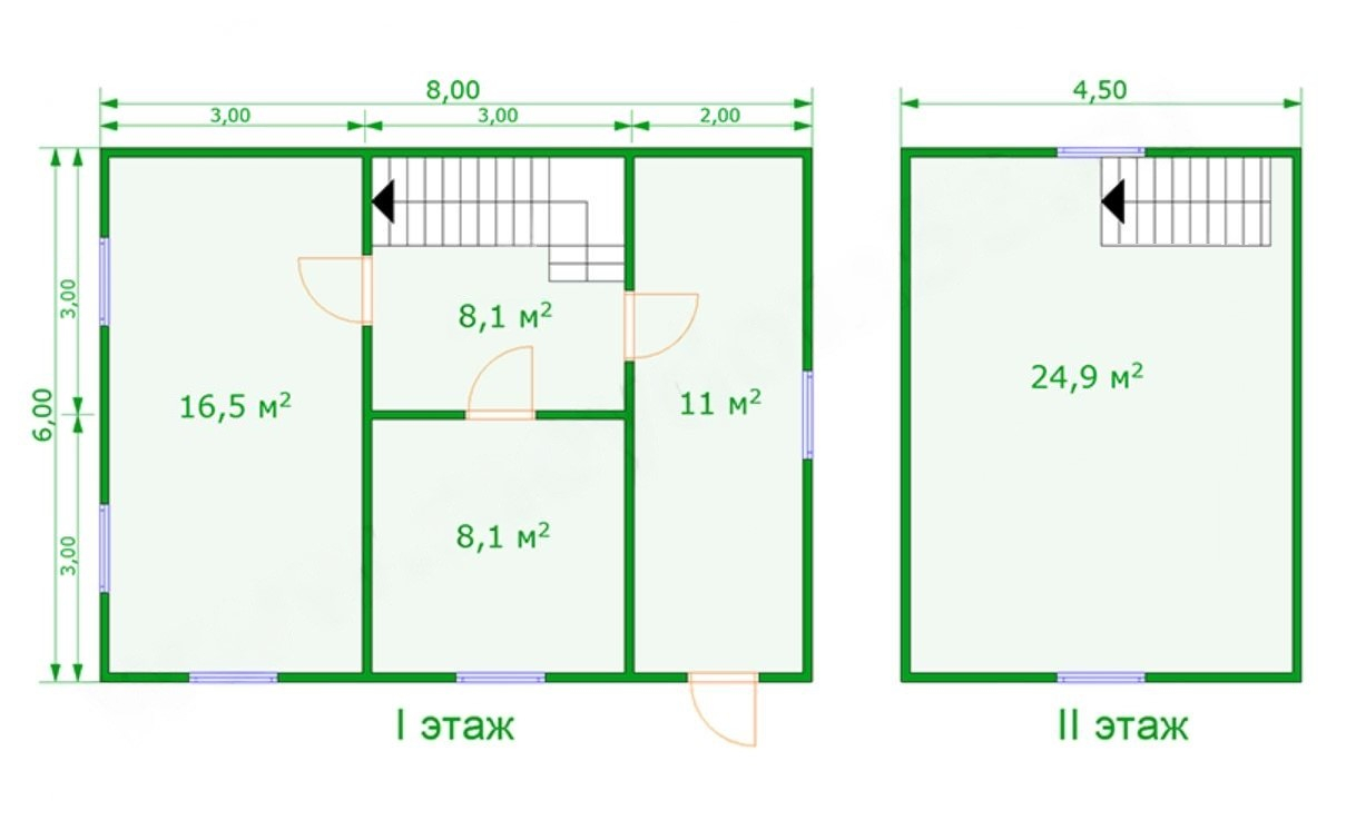 Проект каркасного дома 6м х 6м с мансардным этажом 4.5м х 6м и утепленной верандой 2м х 6м