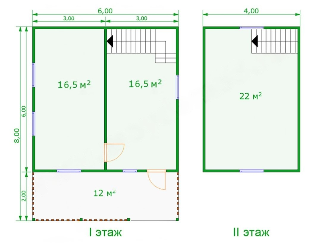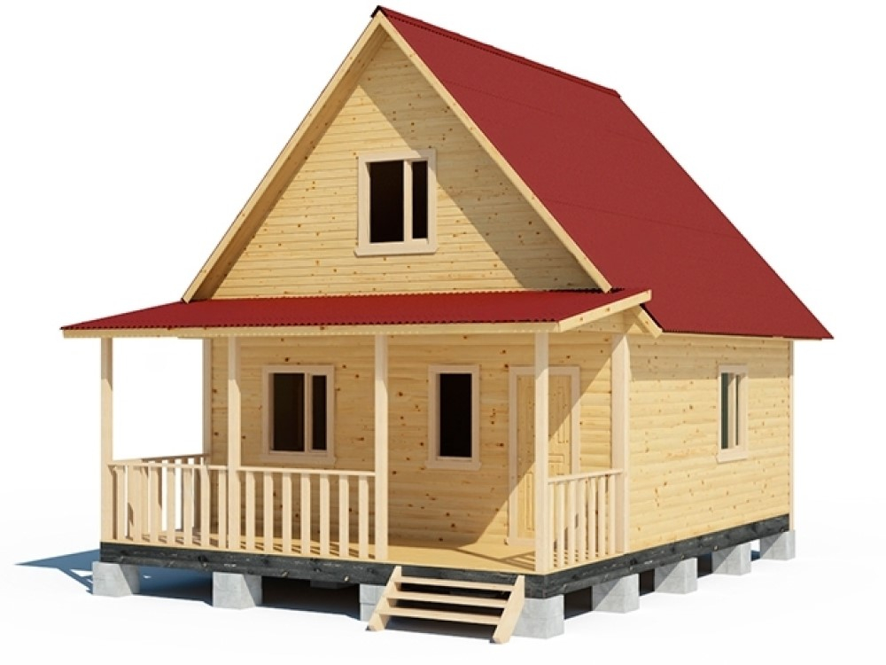 Проект каркасного дома 6м х 6м с мансардным этажом 4м х 6м и верандой 2м х 6м