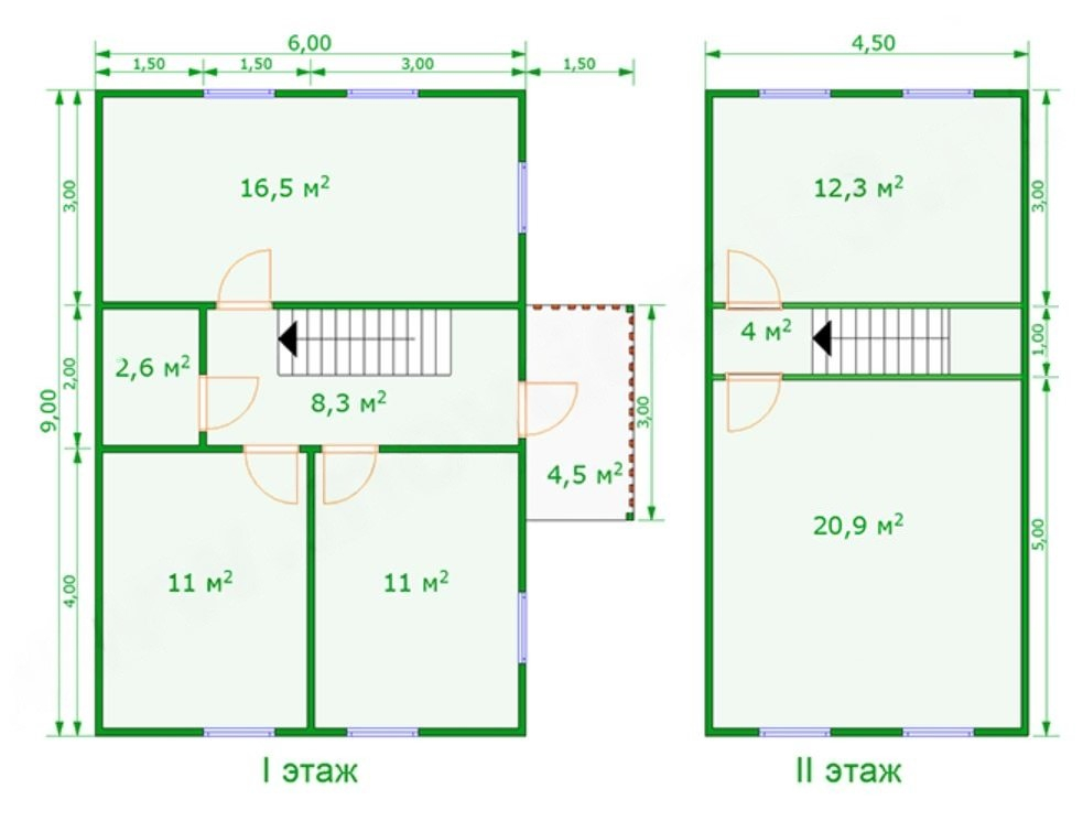 Проект двухэтажного каркасного дома 6х9 с мансардным этажом 4.5х9