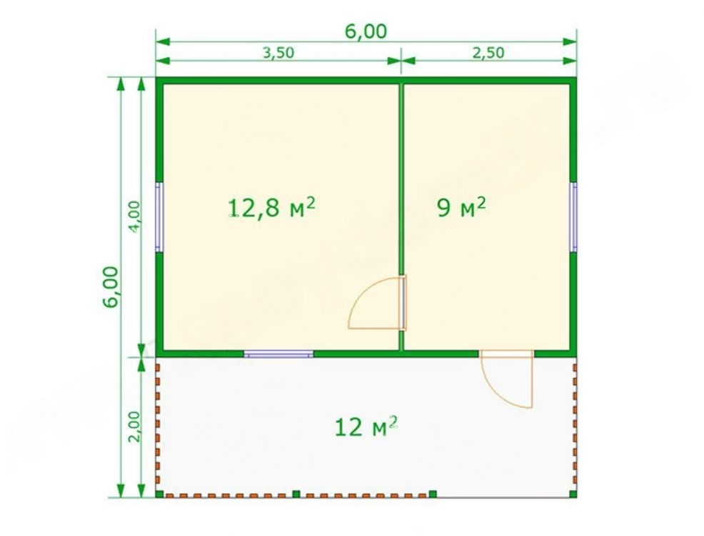 Проект каркасного дома 4м х 6м с верандой 2м х 6м