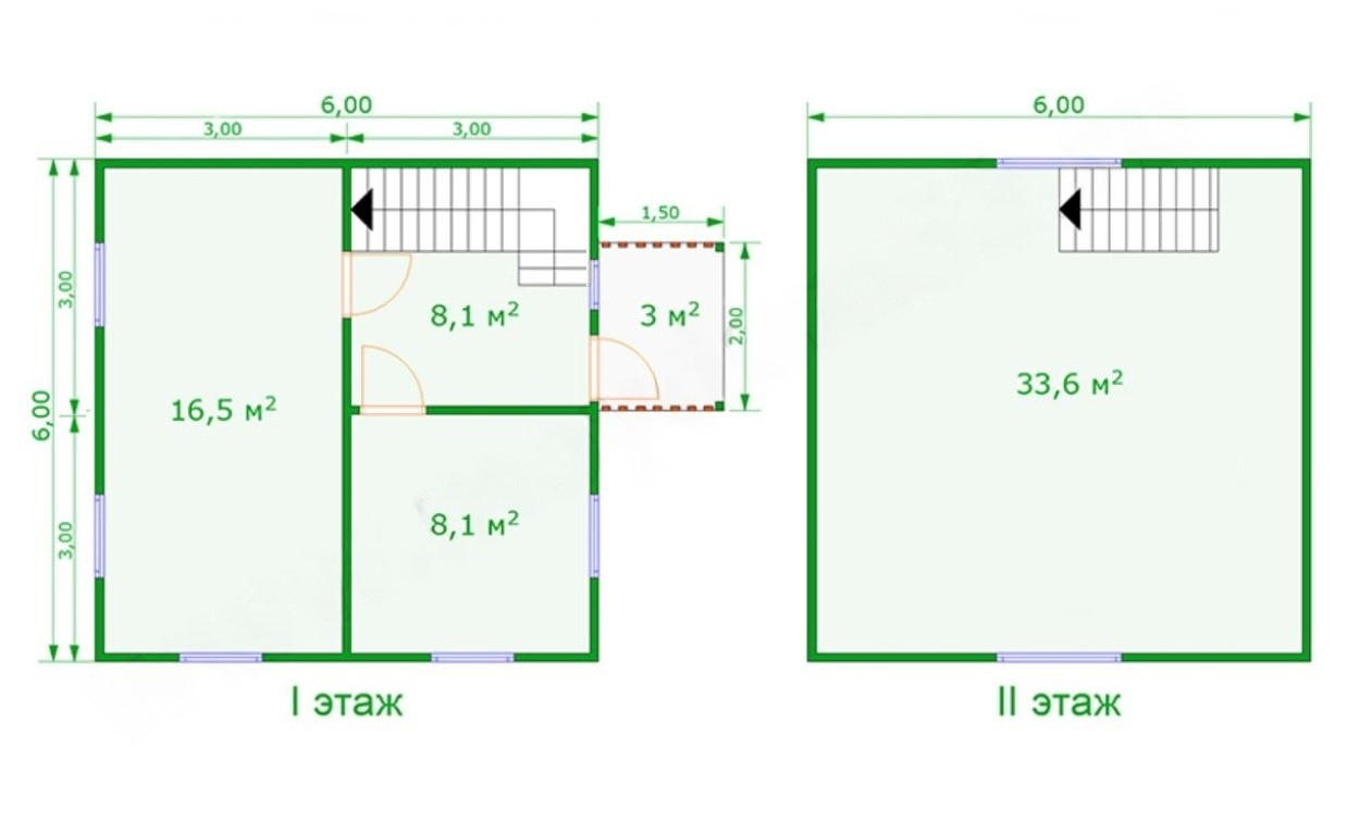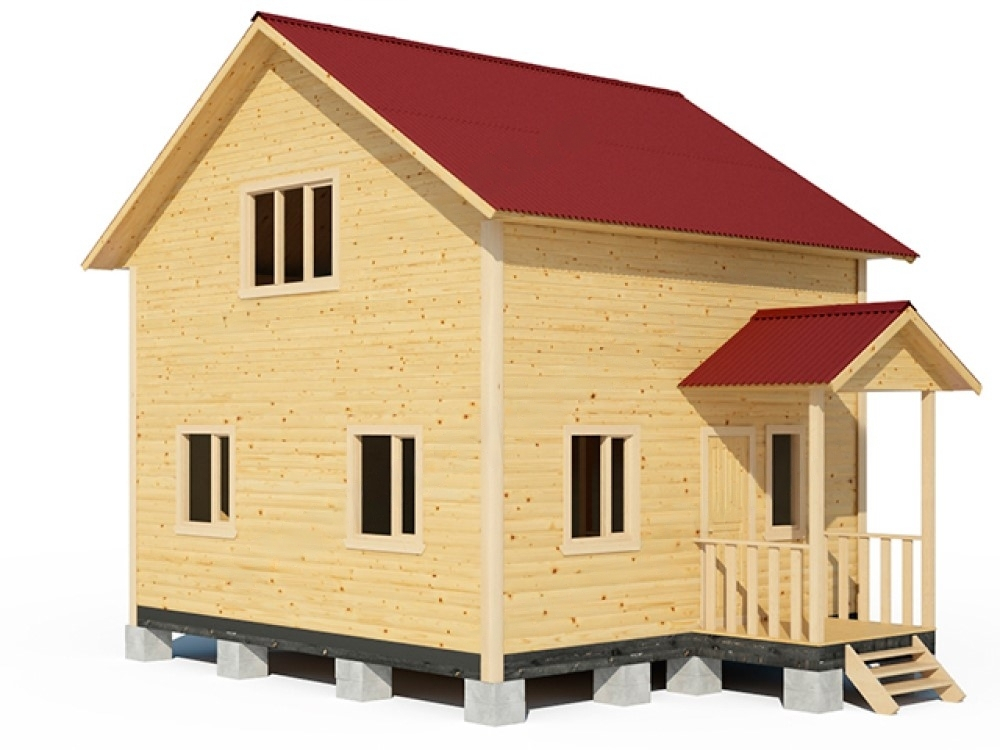 Проект каркасного дома 6м х 6м с полуторным мансардным этажом и крыльцом 1.5м х 2м