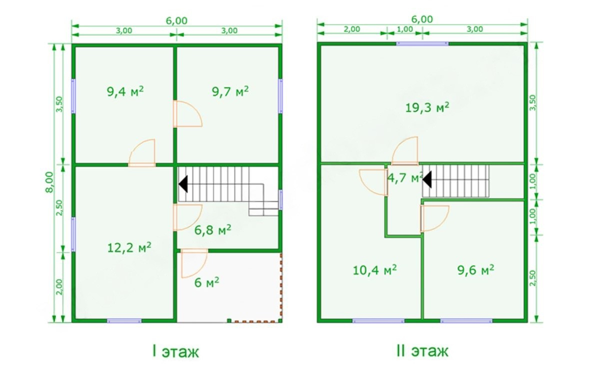 Проект каркасного дома 6м х 8м с полуторным мансардным этажом